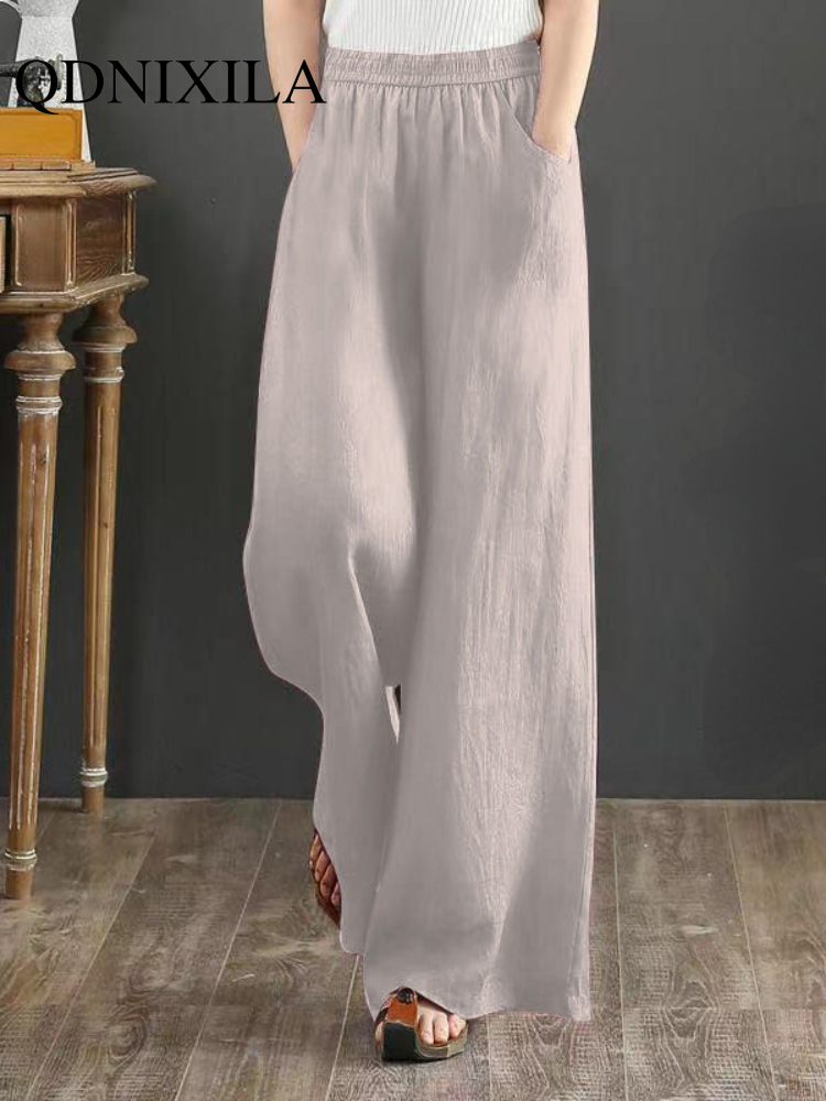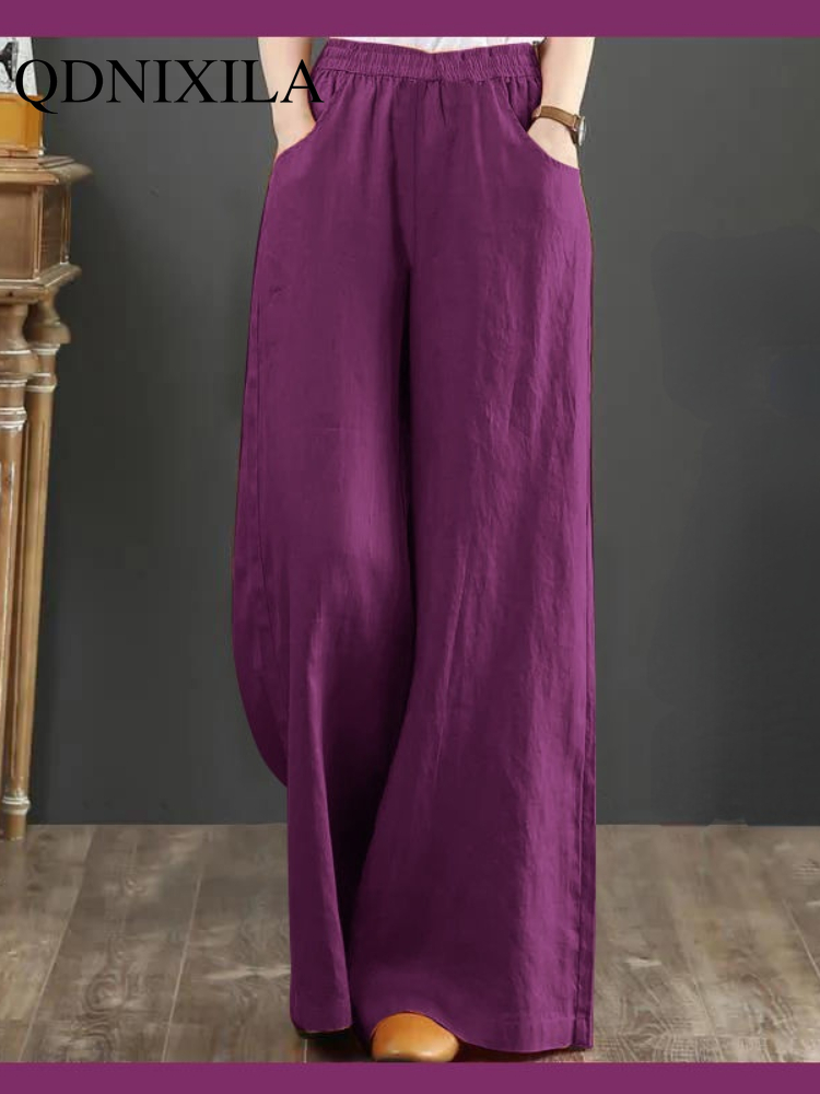 Linen Wide-leg Pants Women's Drawstring Oversize Wide-leg Pants Woman Pants Streetwear Women Drawstring Sweatpants Pants