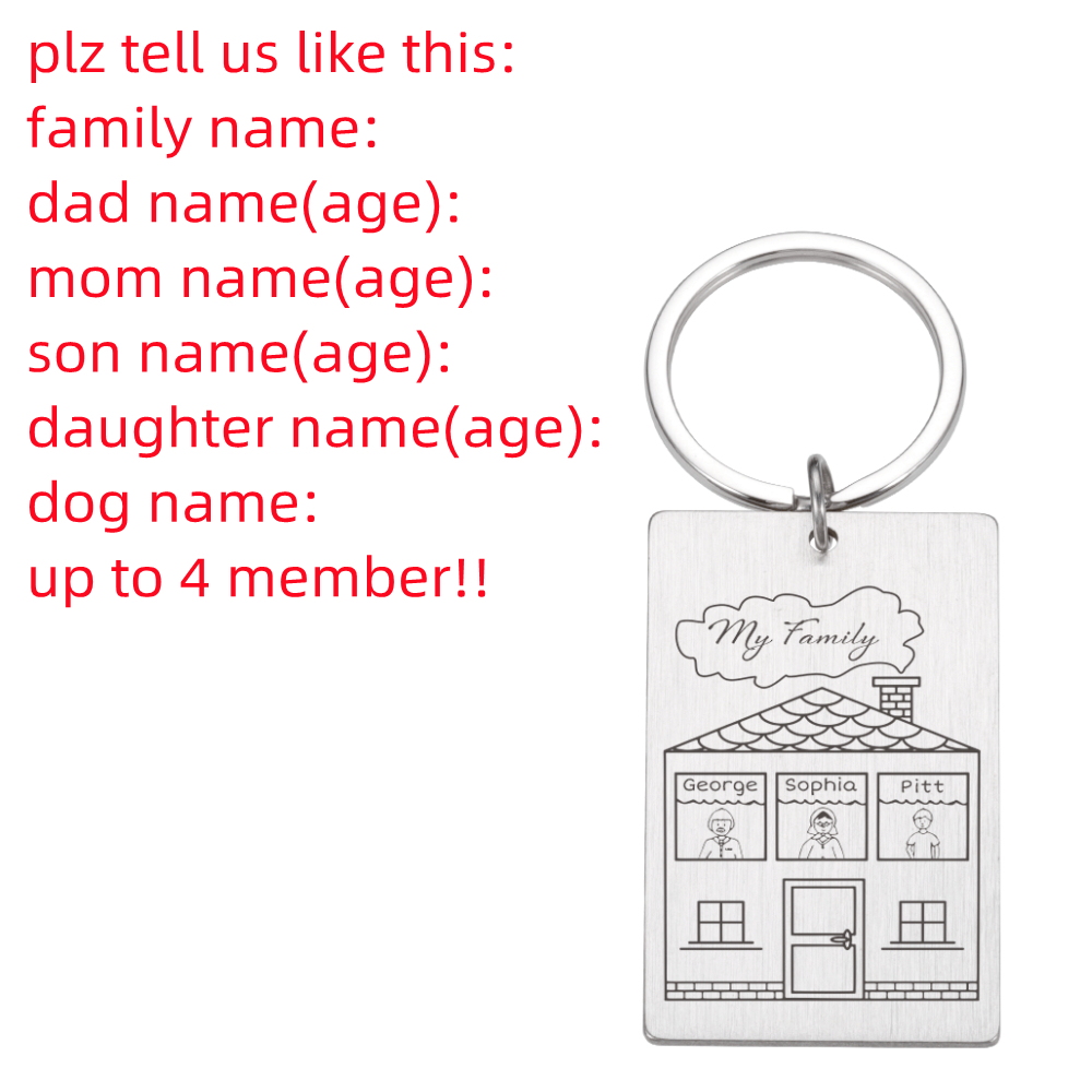 Feature2 : Engraved family Name Personalized keychain for father mother sister bo