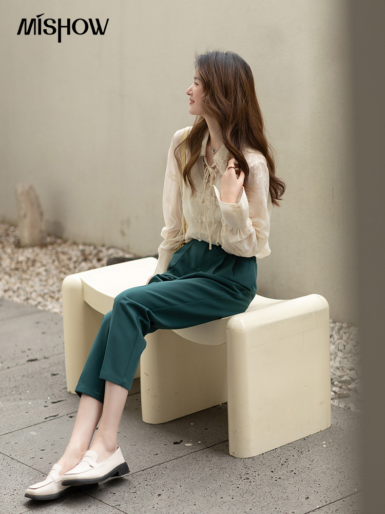 MISHOW Spring Pants For Women High Waist Ankle Length Office Lady Elegant Straight Trousers Female Bottoms MXB11K0149