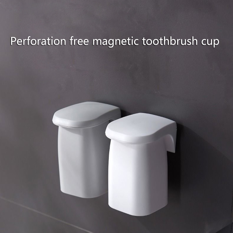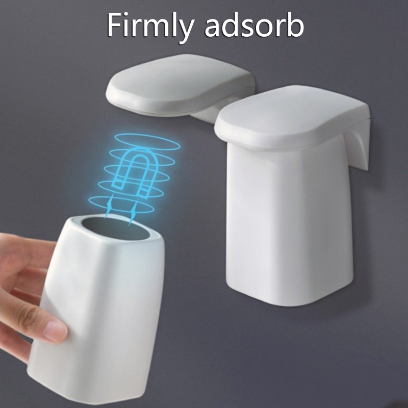Magnetic Suction Mouthwash Cup Wall Mounted Magnet Toothbrush Holder for Home Bathroom Shower Drain Shelf Holder