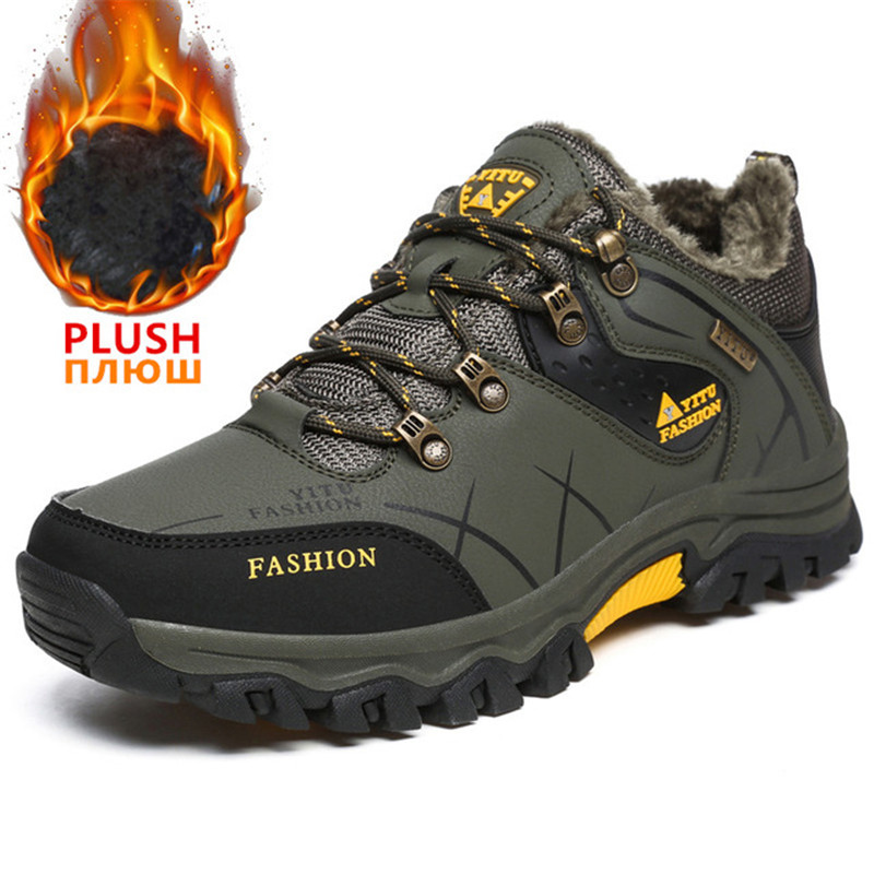 Men Winter Snow Boots Waterproof Leather Sneakers Super Warm Men's Boots Outdoor Male Hiking Boots Work Shoes Size 39-47