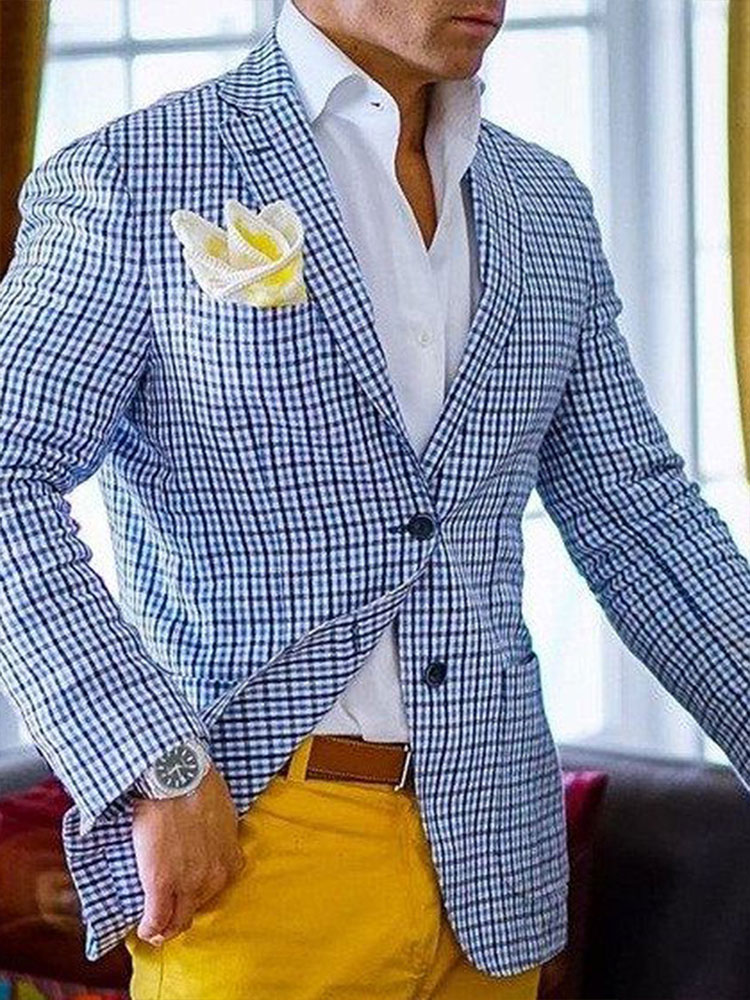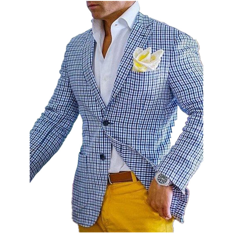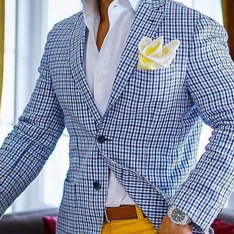 Men's Plaid Print Blazer Casual Slim Wedding Party High Long Sleeve Suits Jacket Men's Clothing Blazer