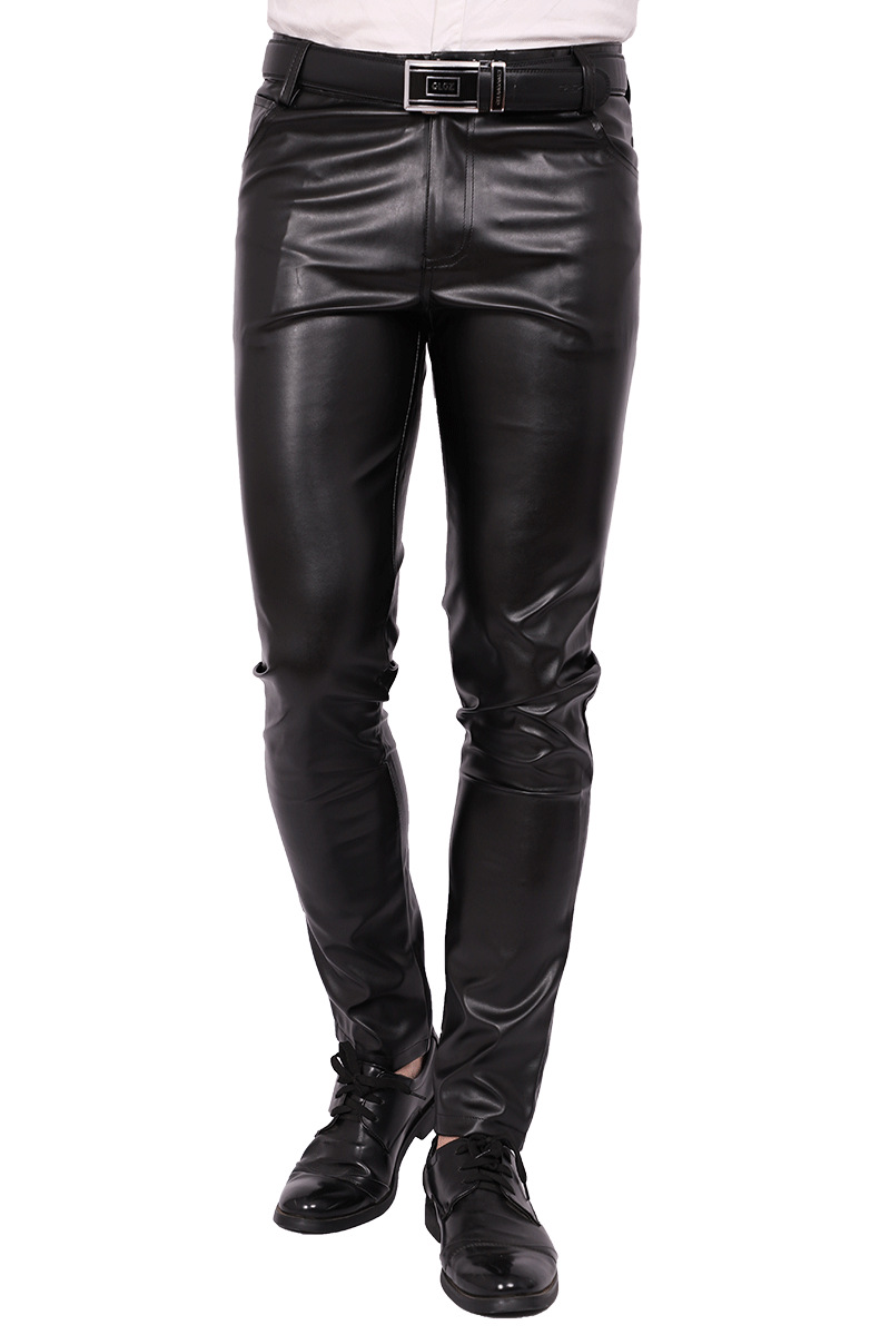 Men's Slim Fit Skinny Pants Tight Stretch Leather Pants Teen Trend Motorcycle PU Leather Pants
