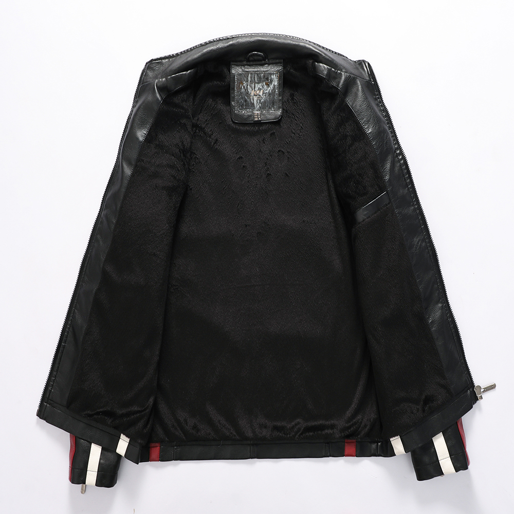 Mens Vintage Motorcycle Jacket Men Biker Leather Jacket Male Embroidery Bomber Coat Winter Fleece Pu Overcoat