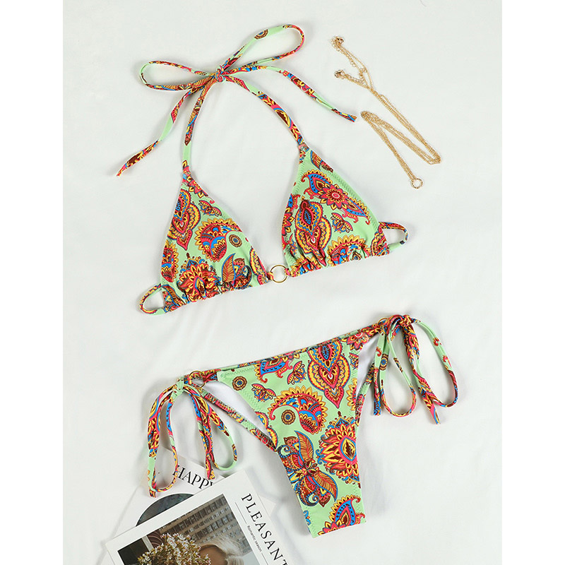 Miyouj Print Bikinis Bordered Bikini Set String Swimwear Women Swimsuit Sexy Beachwear Brazilian Biquini Triangle Bathing Suits