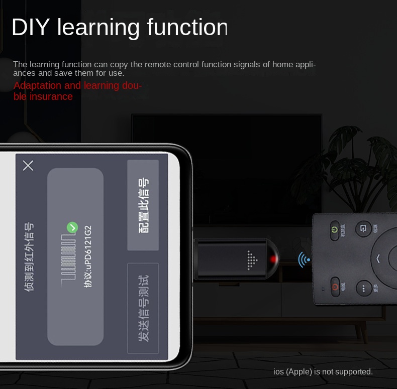 5. The Apple mobile phone can be recognized after it is inserted into the remote control, but why can't it be adapted and the indicator light does not flash?