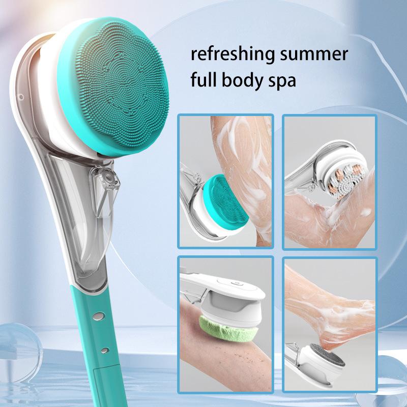3:New Electric Massage Bath Brush Deep Cleaning And Rubbing Back Without Asking For Help Long Handle Silicone Bath Brush