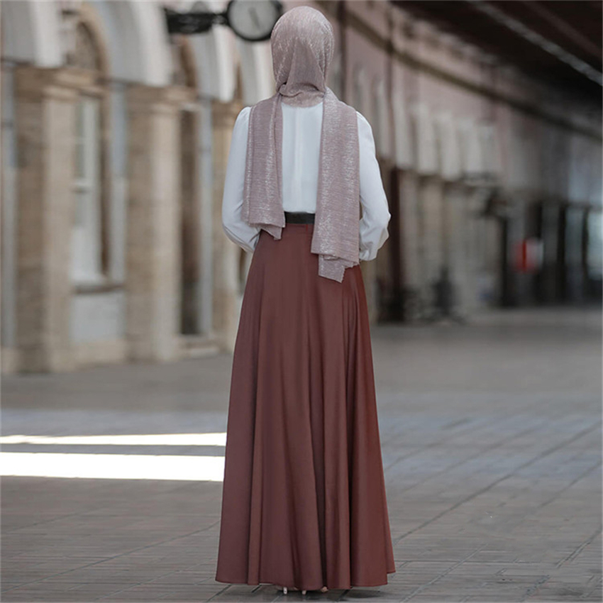 Muslim Elegant Skirt Islamic Dubai A-Line Pleated Turkish Solid Half Dress Hight Waist Big Swing Buttons Party Wear