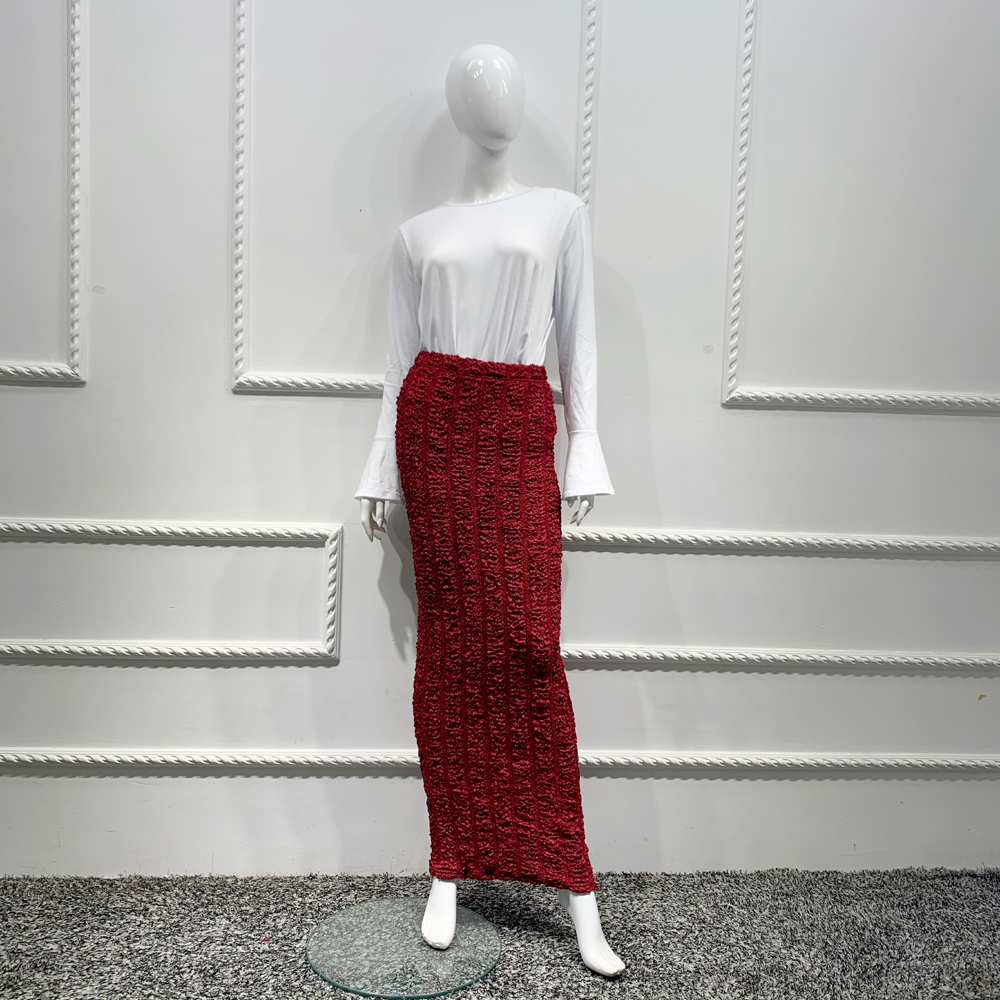 Muslim Skirt Bodycon Stretch Elasticity Women Knit Maxi Bottoms Solid Color Ramadan Sheath Islamic Skirts High Waist Straight