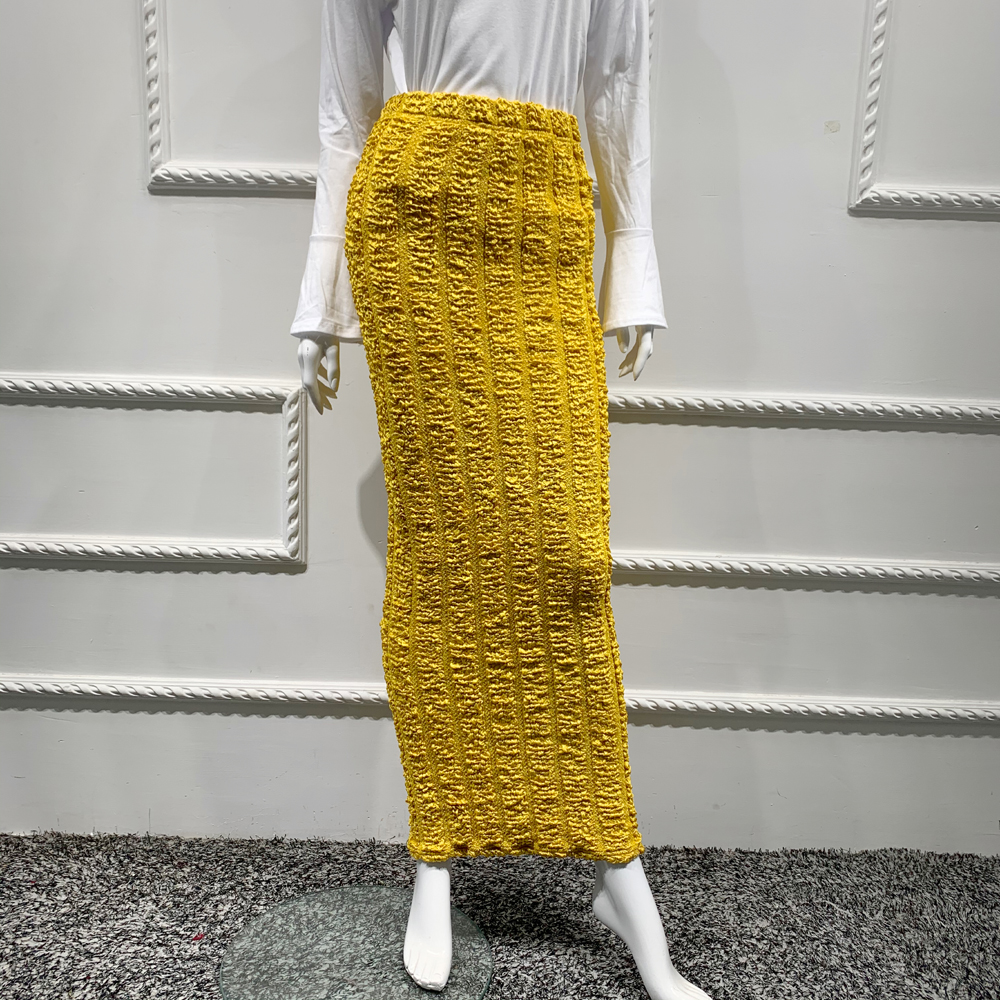 Muslim Skirt Bodycon Stretch Elasticity Women Knit Maxi Bottoms Solid Color Ramadan Sheath Islamic Skirts High Waist Straight