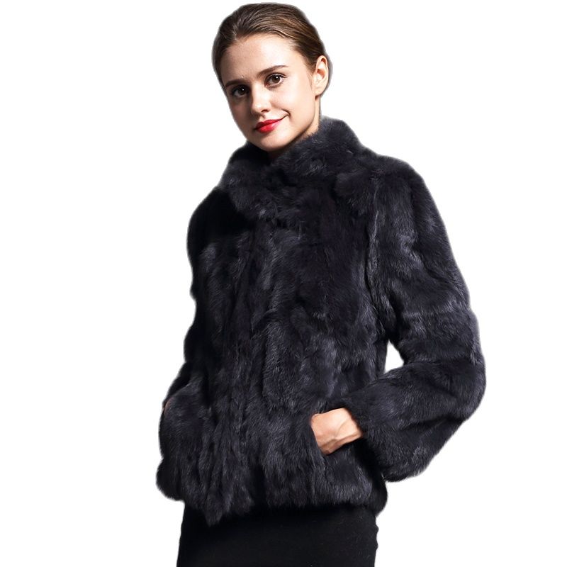 Natural Rabbit Fur Coat for Women Winter Jackets Stand Collar Real Fur Coat Female on Offer With Free Shipping