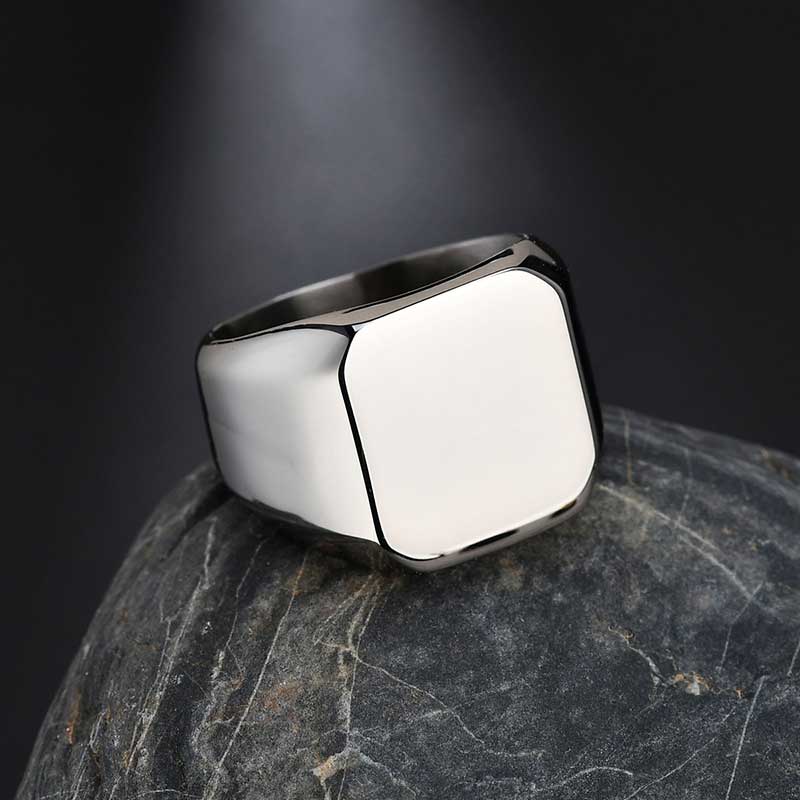 Nextvance Polishing Engrave Signet Ring Square Big Width Band Ring Name Photo Personalized Gift for Biker Men Punk Jewelry