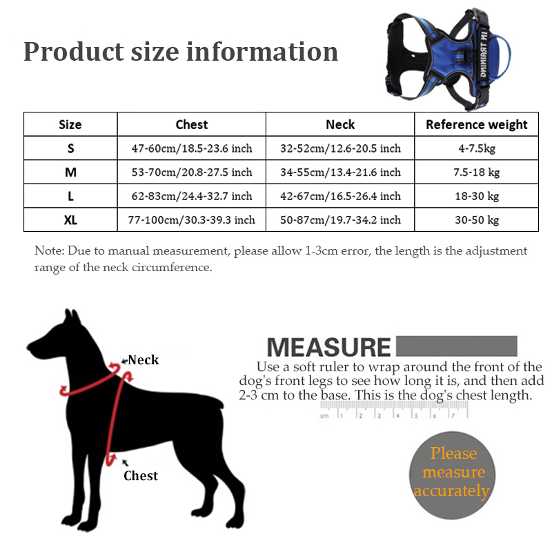 1.Be sure to measure the dog's bust before purchasing the product. Due to there are so many dog breeds,so the measured chest size is more accurate than the reference weight.