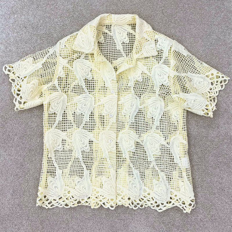OROT@ Summer 2 Colors Polyester Hollow Lace Short Sleeve Lapel Daily Casual Cardigan Blouse