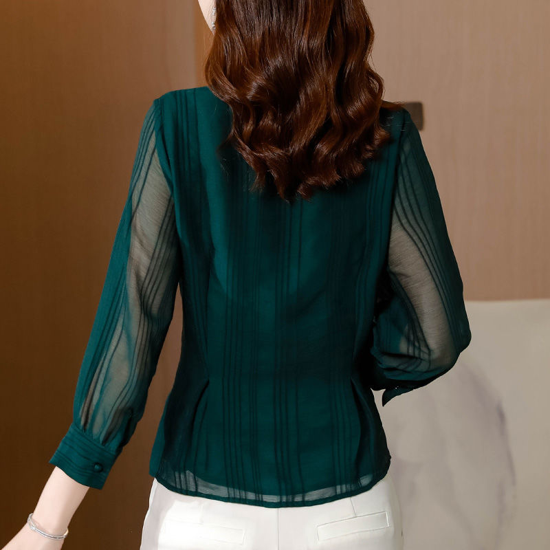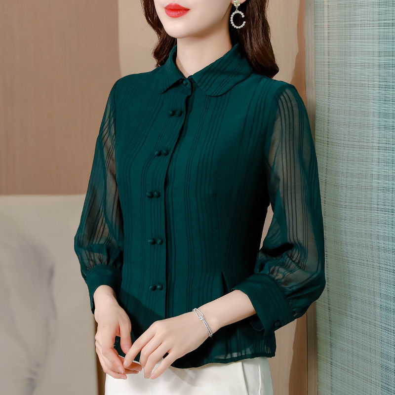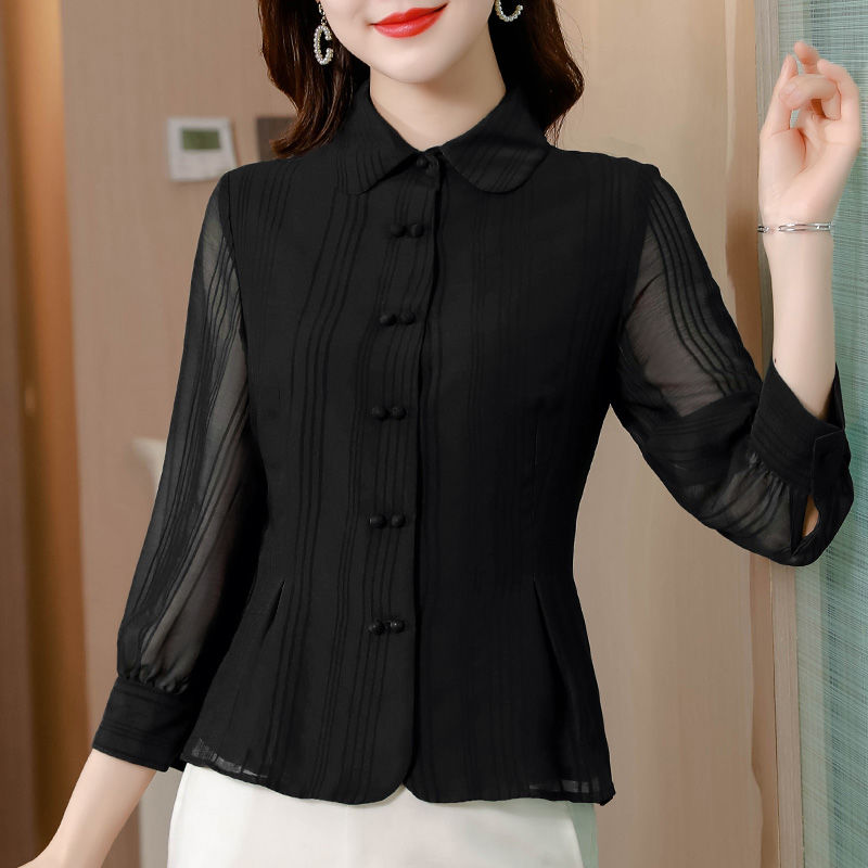 Office Lady Seven-sleeve Shirt Summer Middle-aged Mother Chiffon Blouse Women's Tops Blusas