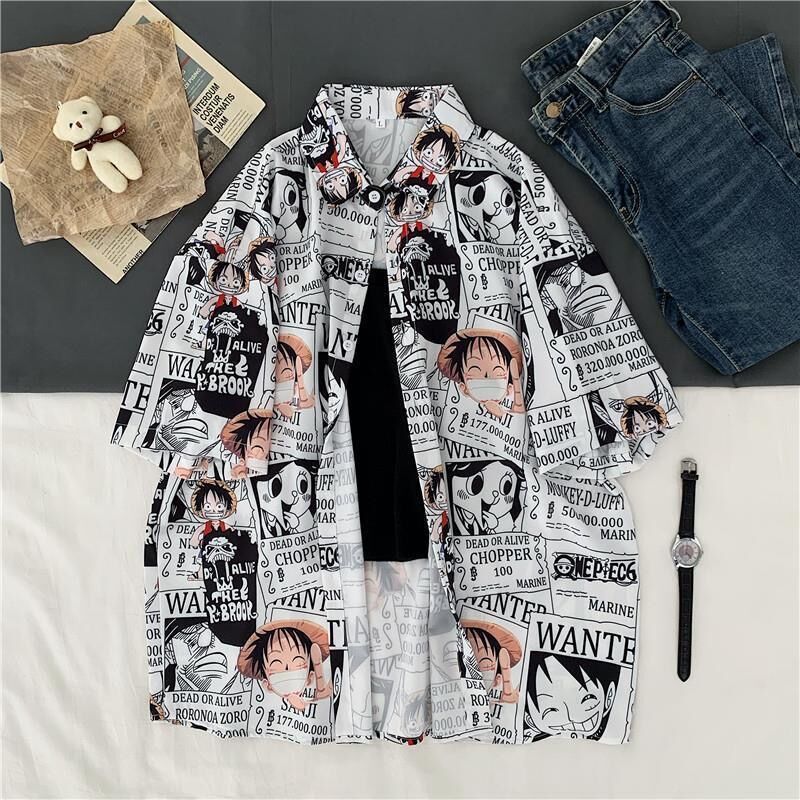 One Piece Anime Print Shirt Button Up Blouse Clothing for Men Women Japanese Harajuku Clothes Casual Girl Tee Tshirt Tops