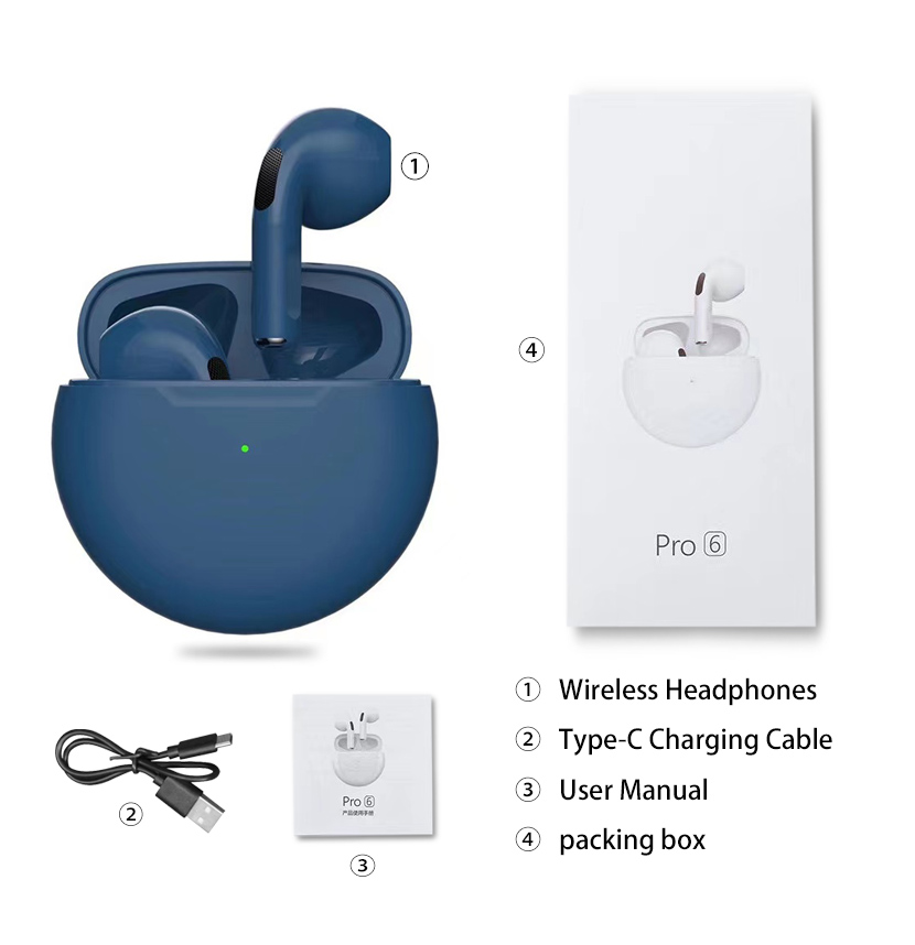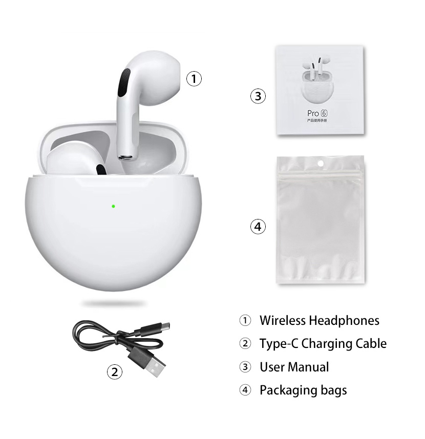2022 Original Pro6 TWS Headsets For Iphone Xiaomi Phones Bluetooth 5.1 Touch Control Wireless Earphones Sport Earbuds Music Headphone