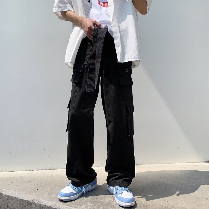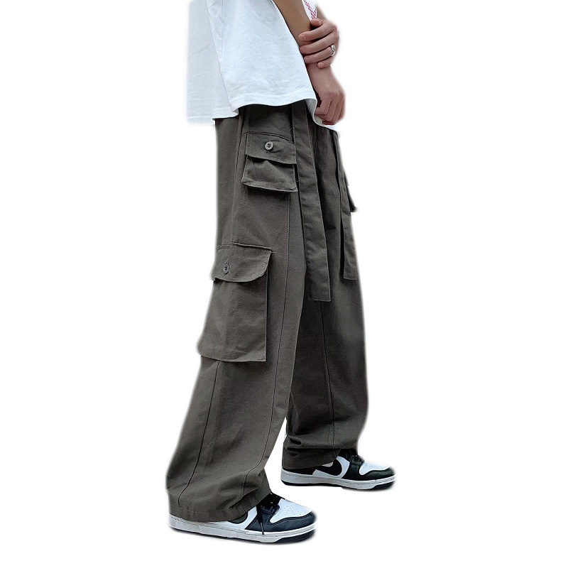 Overalls men's Hong Kong Style Multi Pocket loose youth casual pants retro versatile straight pants