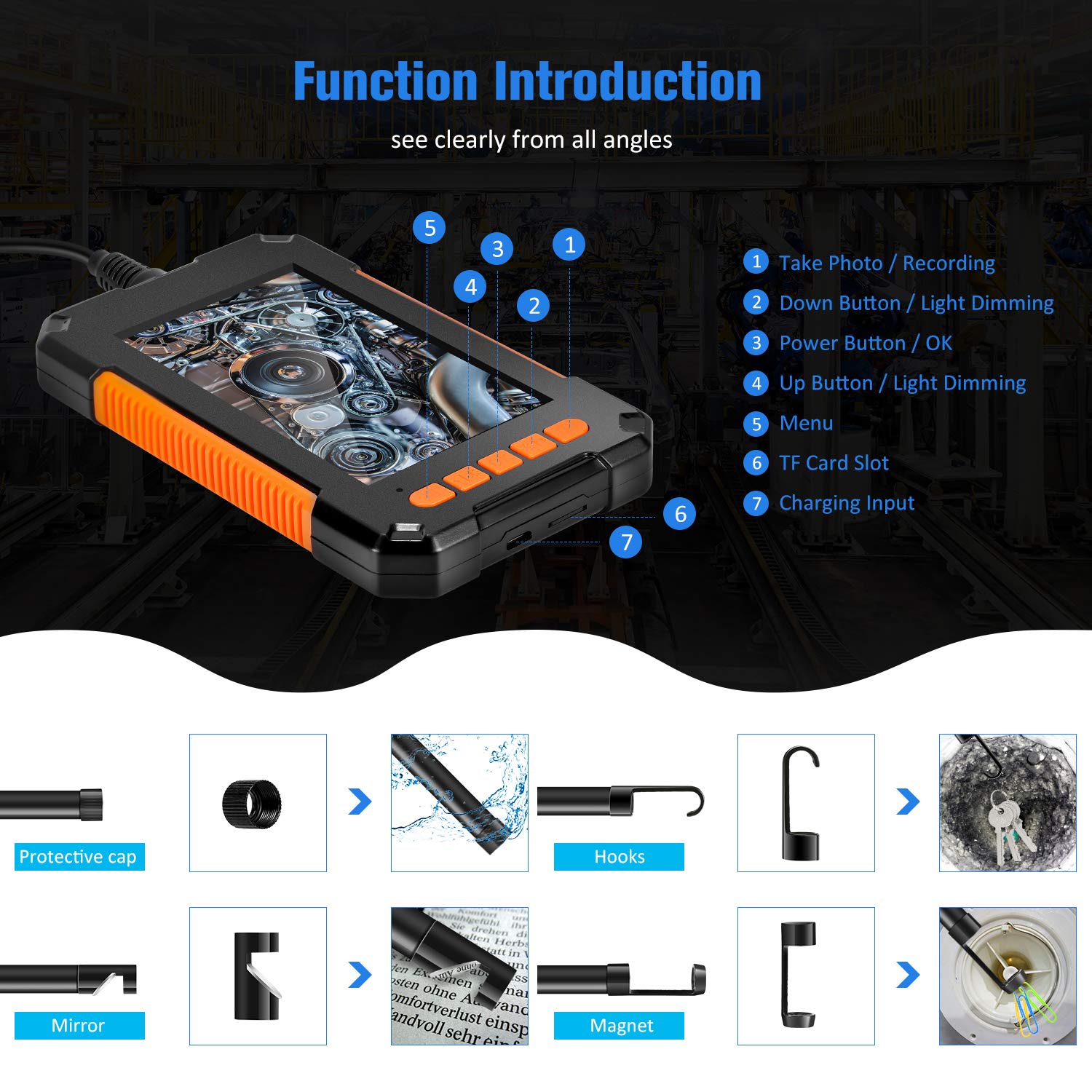 3. [ Versatile & Easy to Use ] : The Snake Inspection Camera with 2M/ 5M Flexible Half-rigid Cable, great for various kinds of inspection easily like as car repair, industrial mechanical inspection, drain checking, line detection, home appliance maintenance, wall structure inspection, sewer drain inspection, etc.