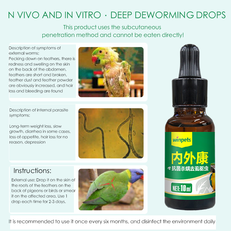 Parrots and pigeons deworming, feather lice, roundworms, fleas and lice, deworming inside and outside 10ml