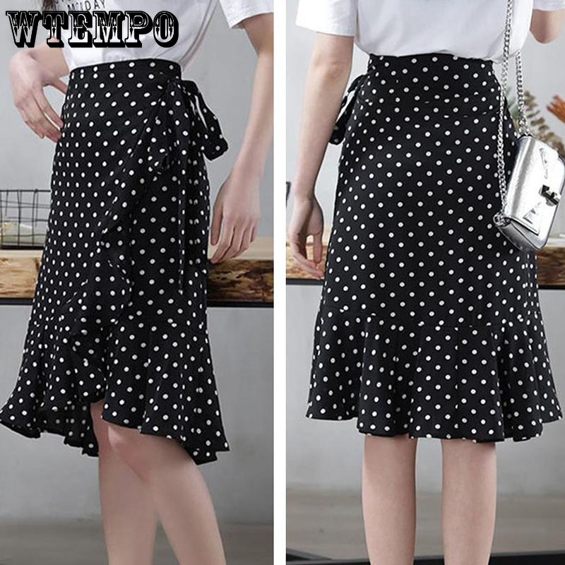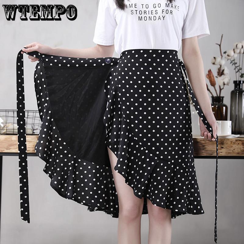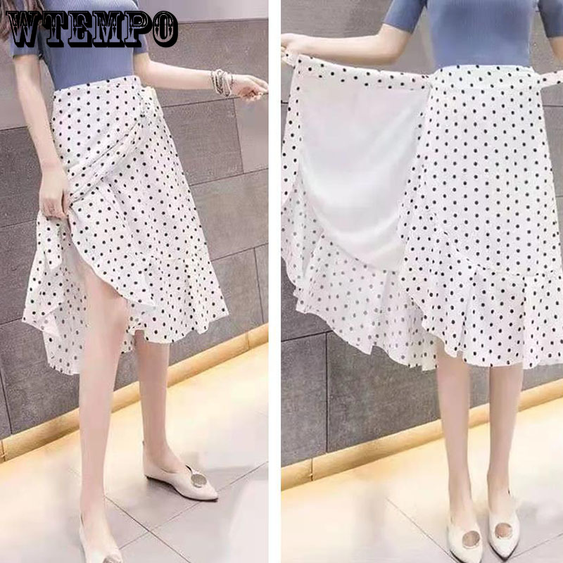Polka Dot Ripple Chiffon Skirt Summer Women's Wrap Skirt High Waist Mermaid Skirt One-Piece Irregular Ruffled Lace-Up Skirt
