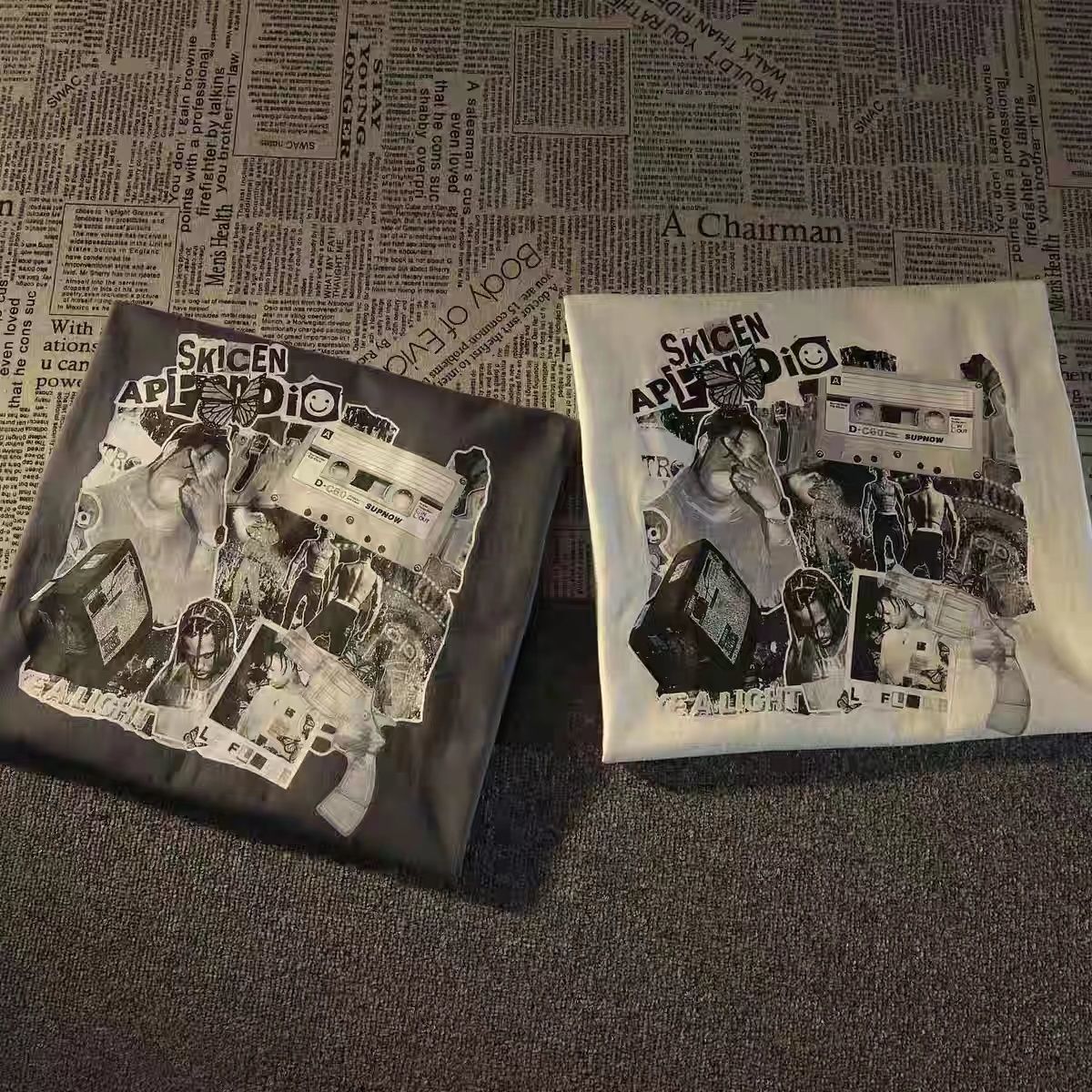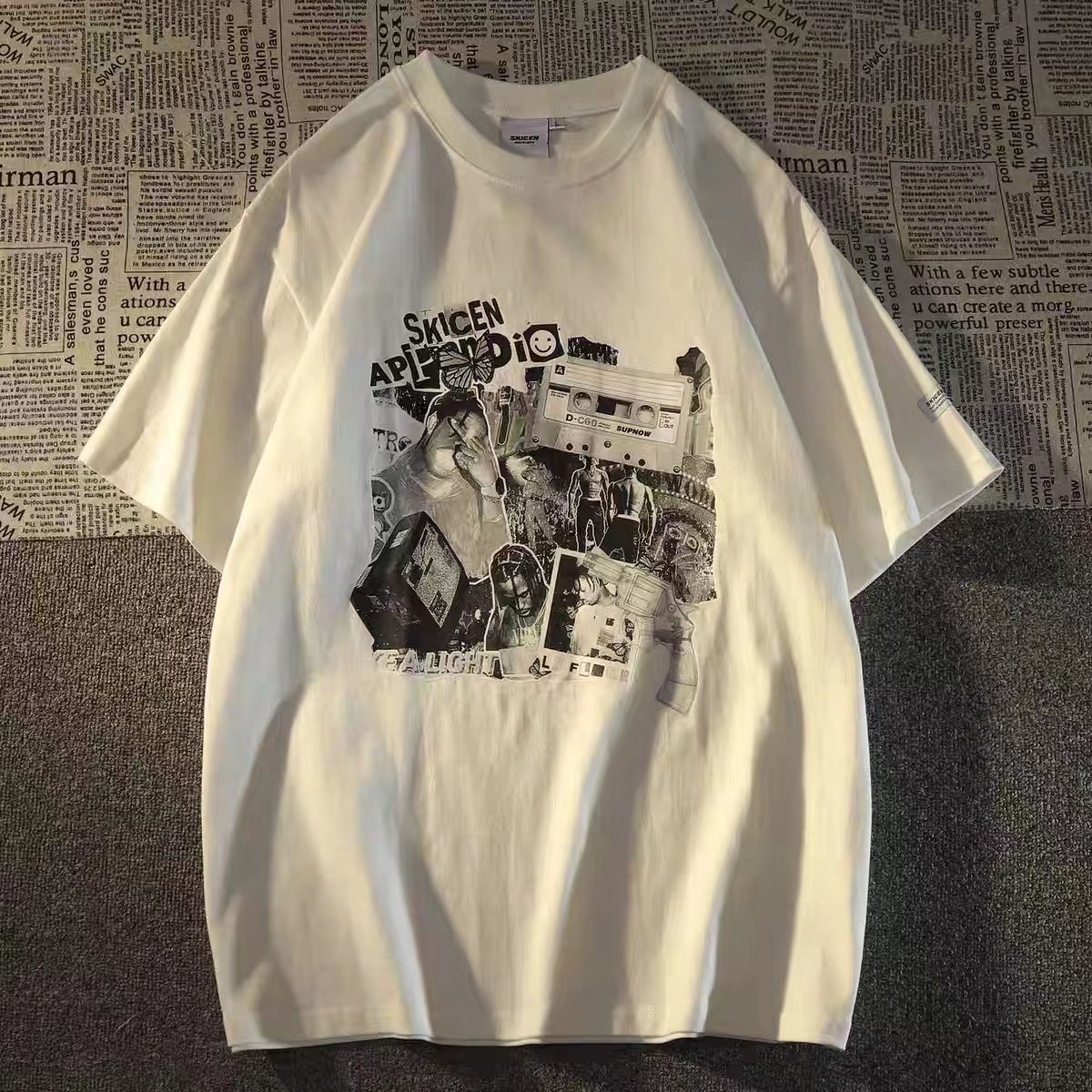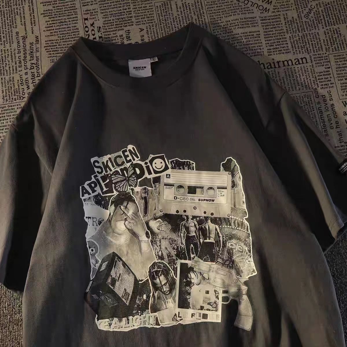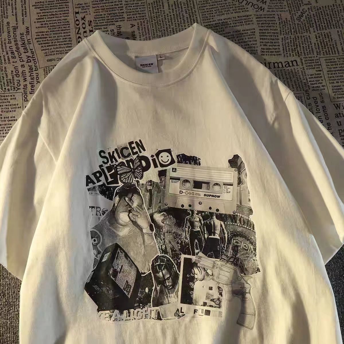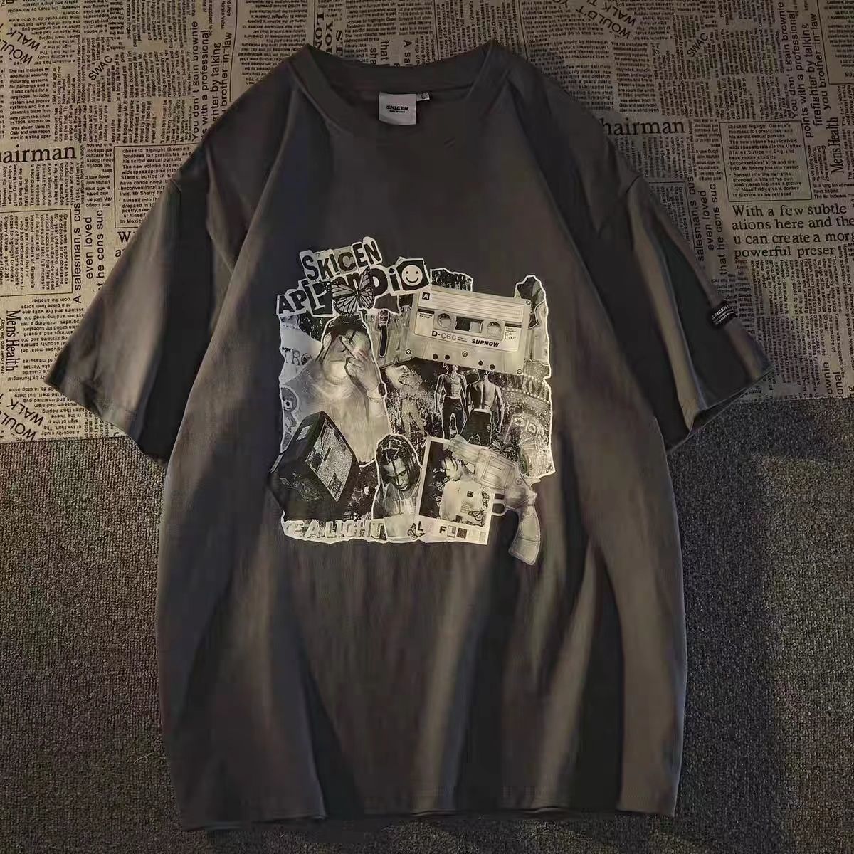 Retro American couple short sleeved T-shirt summer men and women tide oversize loose half sleeve T-shirt y2k top