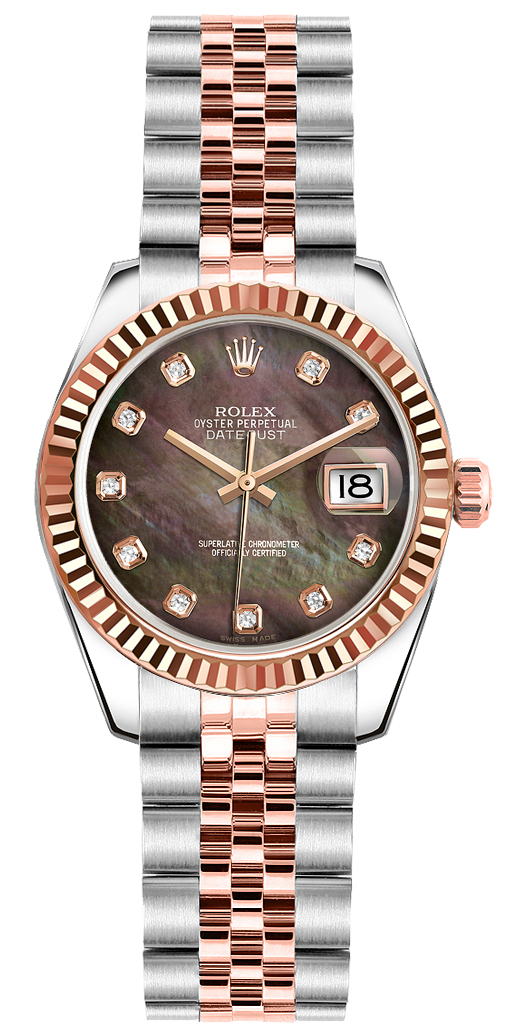 26mm = 1″ Case, 6″ Adjustable Bracelet Inlet Size: 13mm Fixed Bezel Polished Solid 18k Everose Gold Screw Down Crown Screw Down Solid Case Back Concealed Folding Crownclasp Deployment Buckle