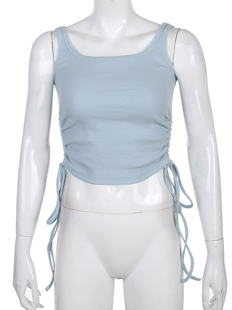 Ruched Sleeveless Tank Tops Tees Women Solid Casual Crop Top Ladies High Street Tie Up Croptop Summer Fitness