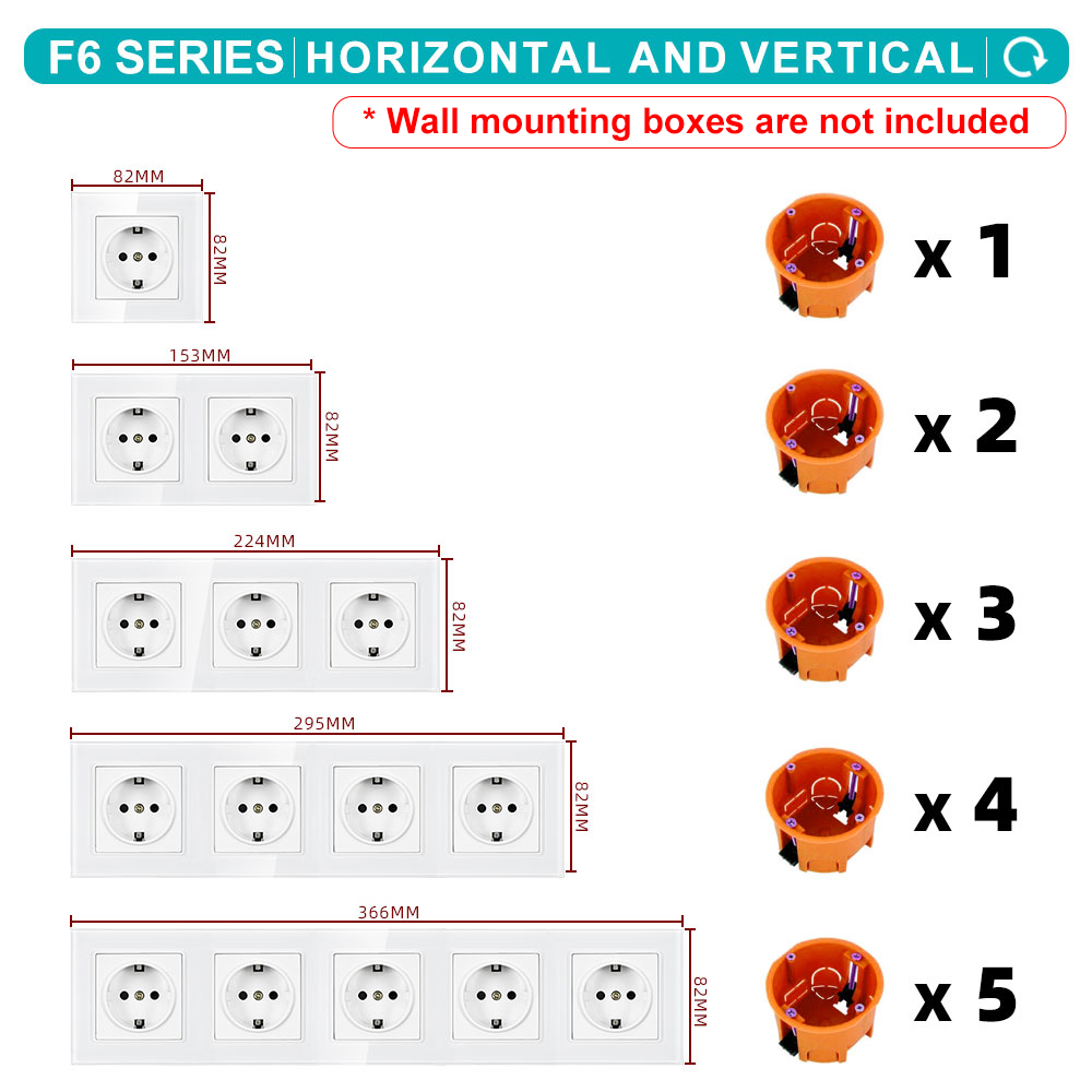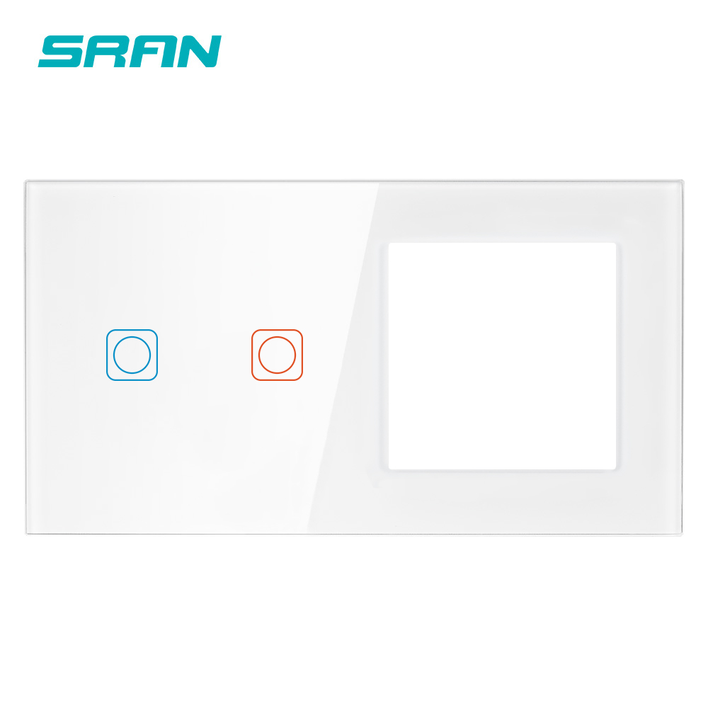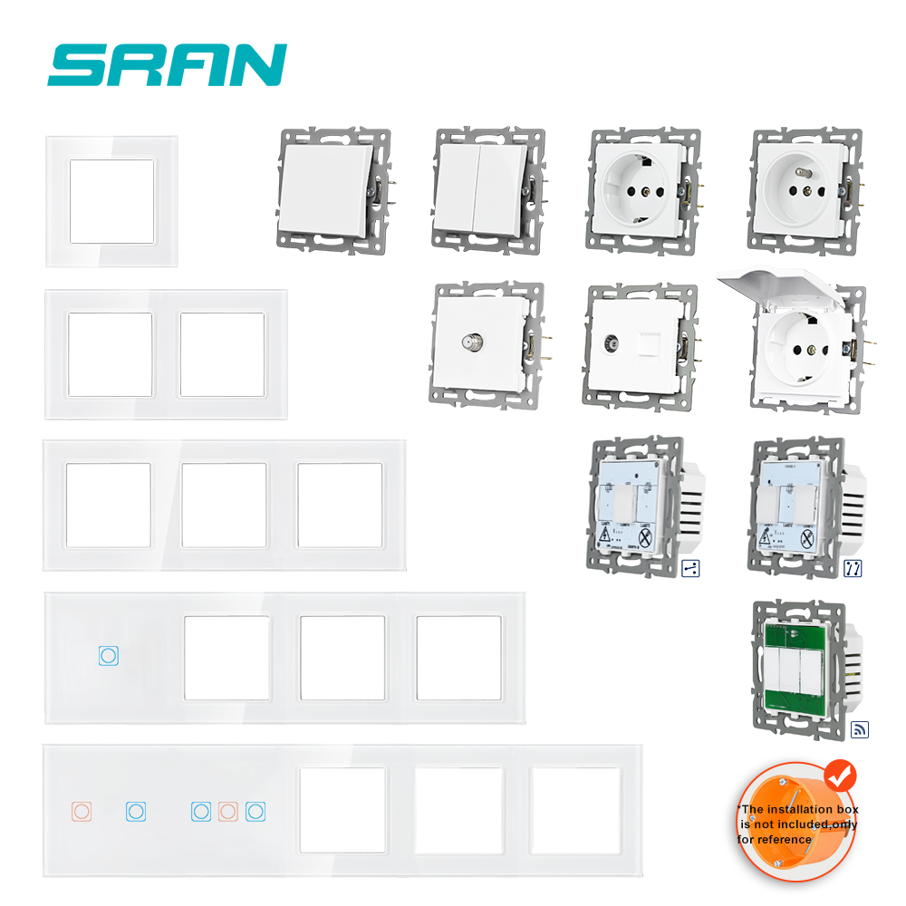 SRAN F6 82mm Series White Module and Crystal Tempered Glass Panel, 16A 250V Electrical sockets and switches