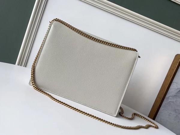 Saint Laurent Cassandra Clasp Bag In Blanc Grained Leather