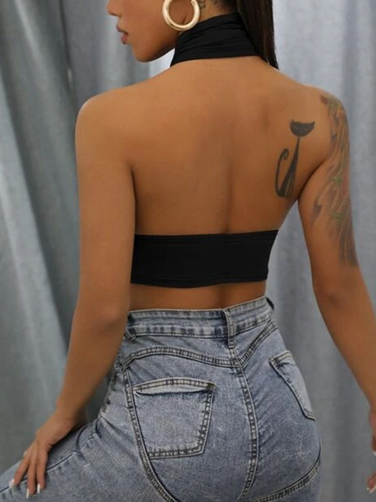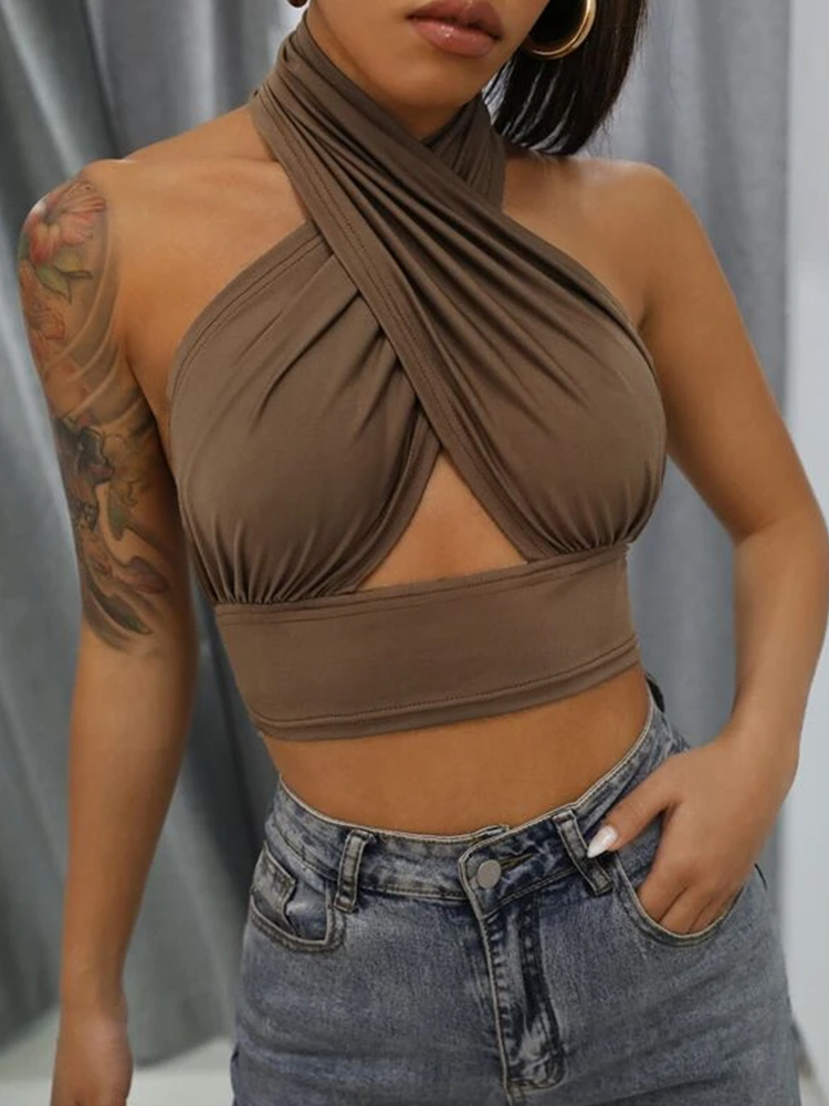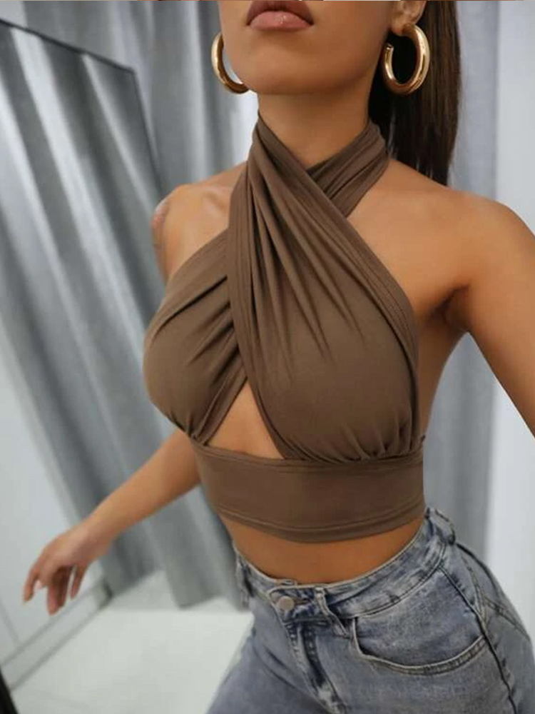 Sexy Women Tank Tops Summer Solid Color Cross Halter Neck Push Up Hollow Gothic Vest Female White Crop Tops