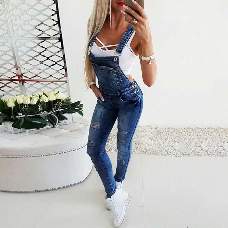 Sexy Women's Broken Hole Jeans Jumpsuit Long Spring Autumn Wear Female Overalls High Street One Piece Skinny Jumpsuit