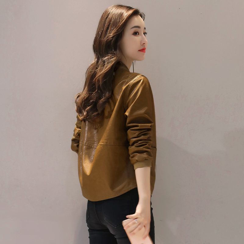 Short Leather Jacket Women's Spring Autumn Loose Large Casual Leather Lady PU Leather Jacket Coat