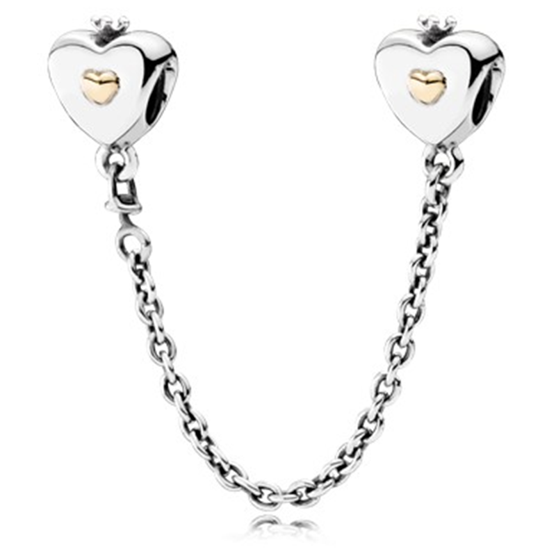 Silver Color Feather Crown Safety Chain Owl Love Beads Tower Pendant Fit Pandora Charms Bracelets DIY Women Original Jewelry