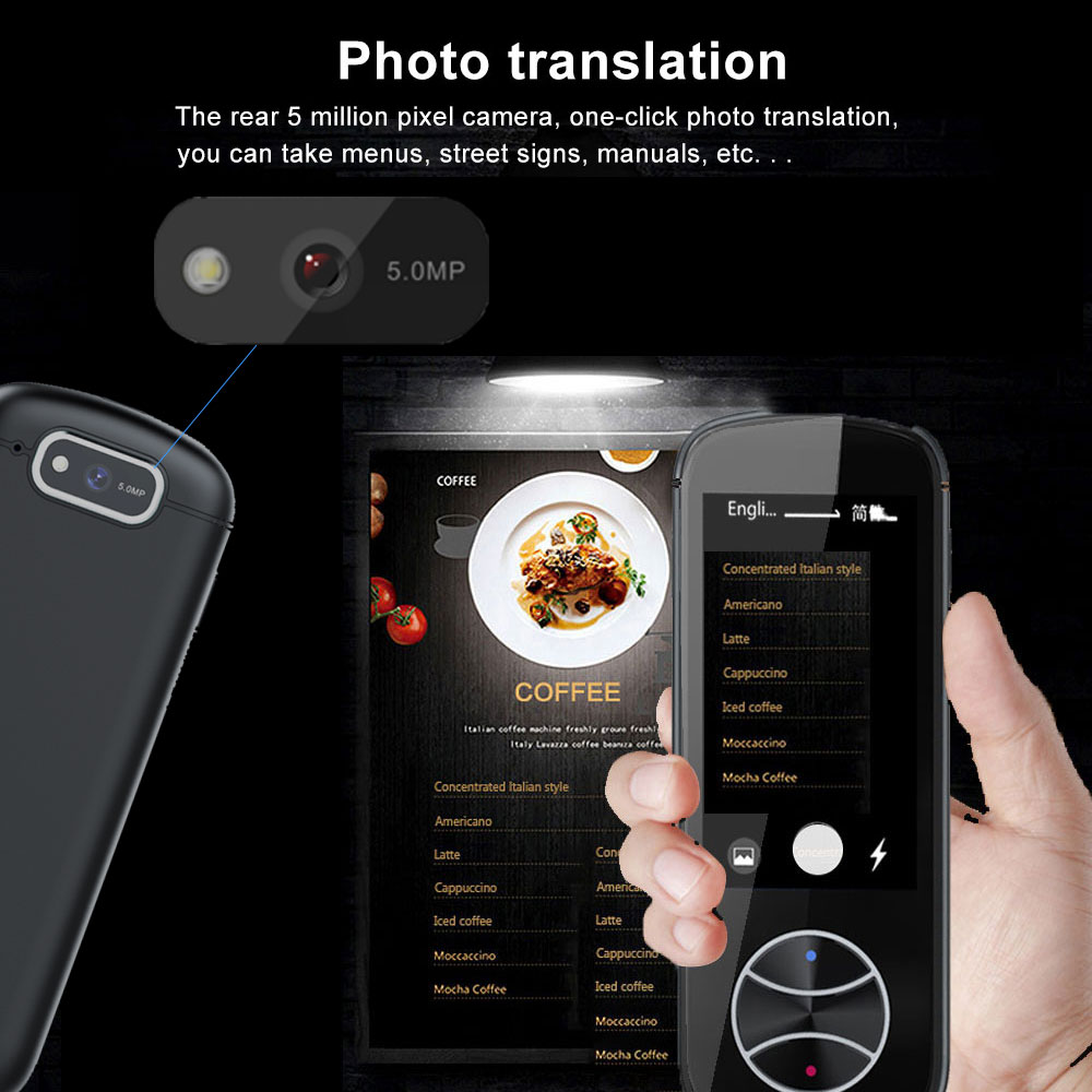 ✅【Image Translation】-The instant language translator built-in high definition & powerful recognition HD camera, supporting up to 60 - language photo translation. This photo translation could help you to read menu / road signs / magazine / labels that is different language. Tips: Connect WiFi, set the source original language, and the language to be translated . NOTE: Please tear off the protective film of the camera before using.