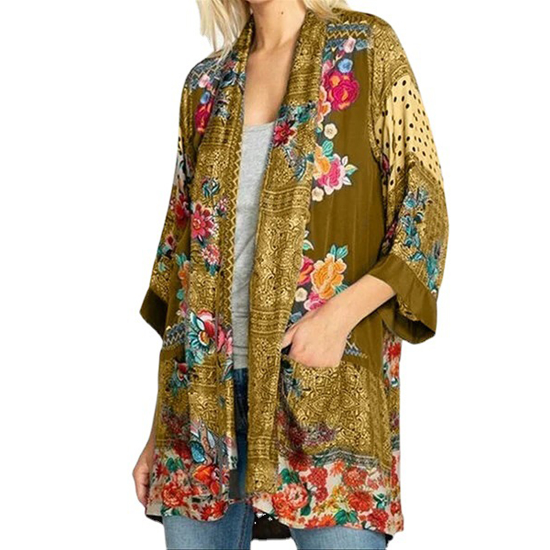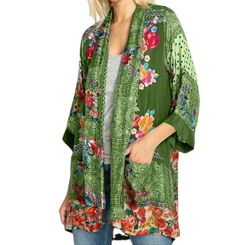 Spring Autumn Floral Print Cardigan Pocket Tops Women Long Sleeve Loose Casual Aesthetic Shirt Female Y2K Vintage Femme Clothes