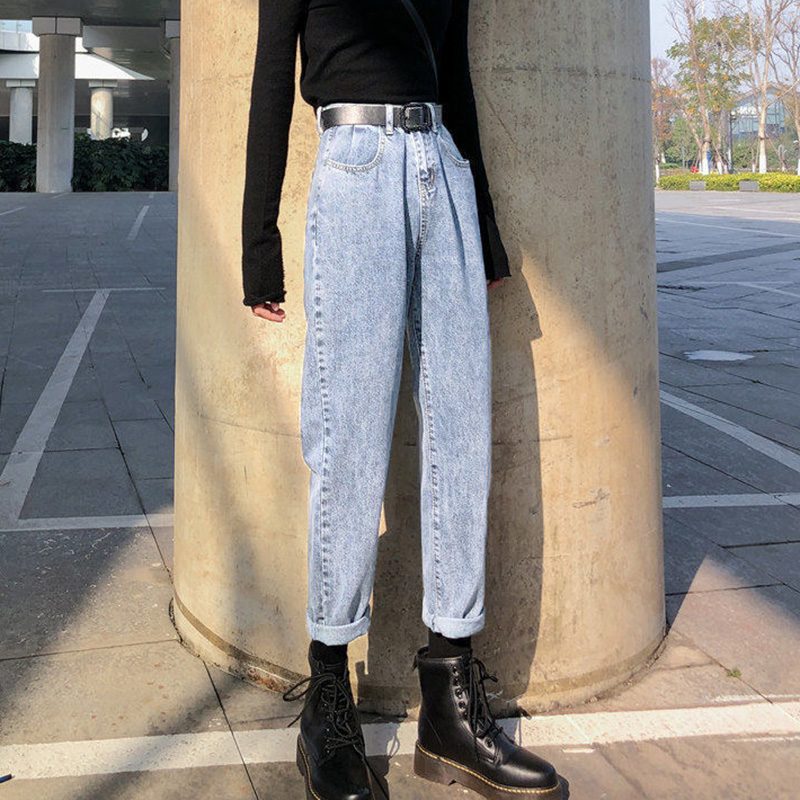 Spring/summer 9-point straight jeans women's size Hong Kong style high waist slim fat mm loose Joker Torre pants
