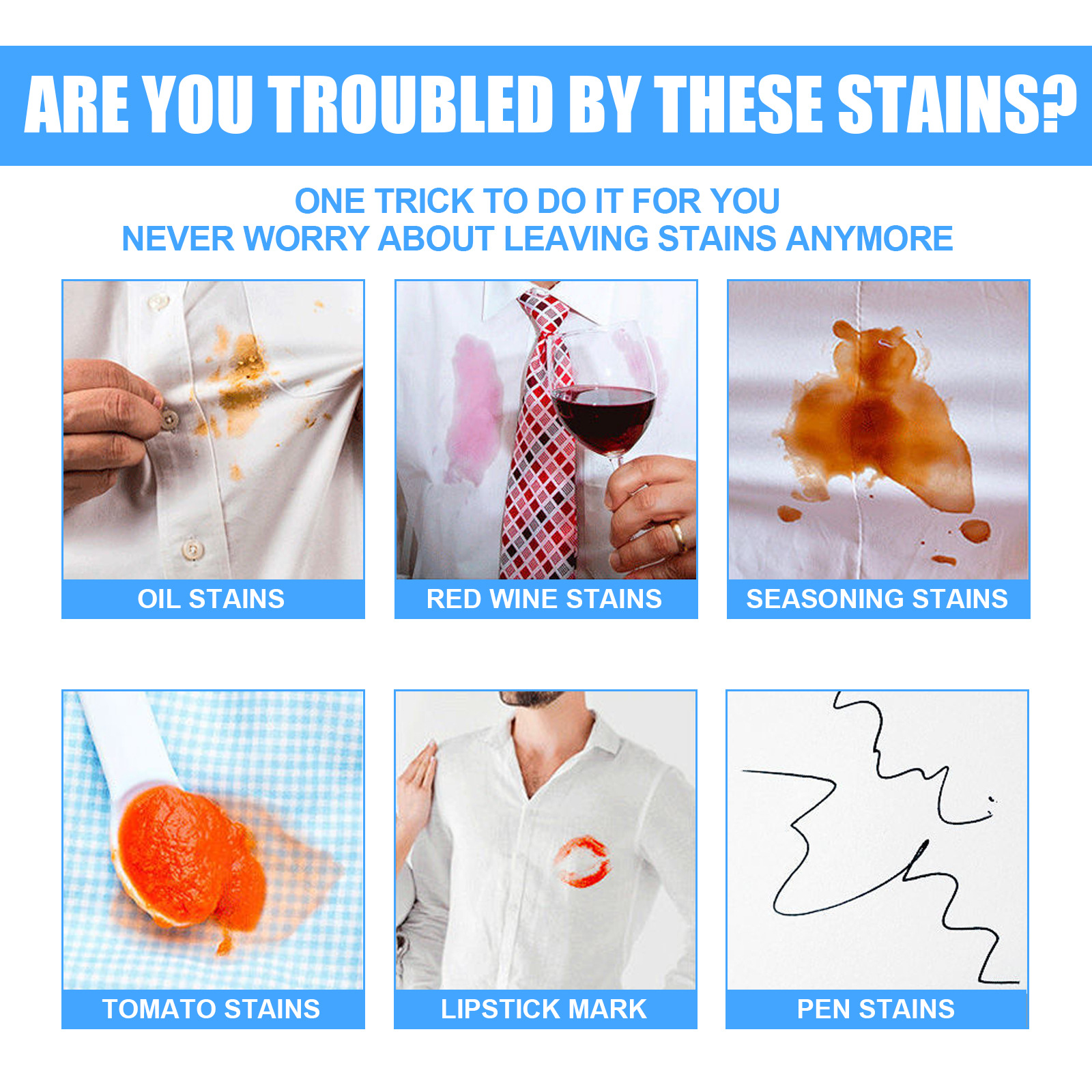 1. For food stains, cosmetic stains, beverages (coffee, tea, wine, milk, cola, etc.), ketchup, oil stains, etc.