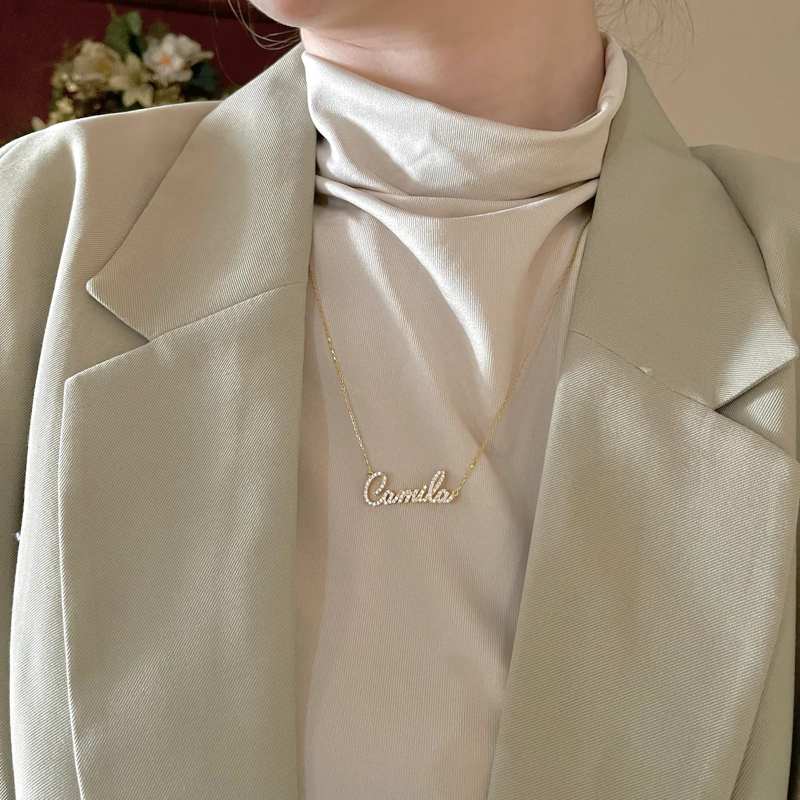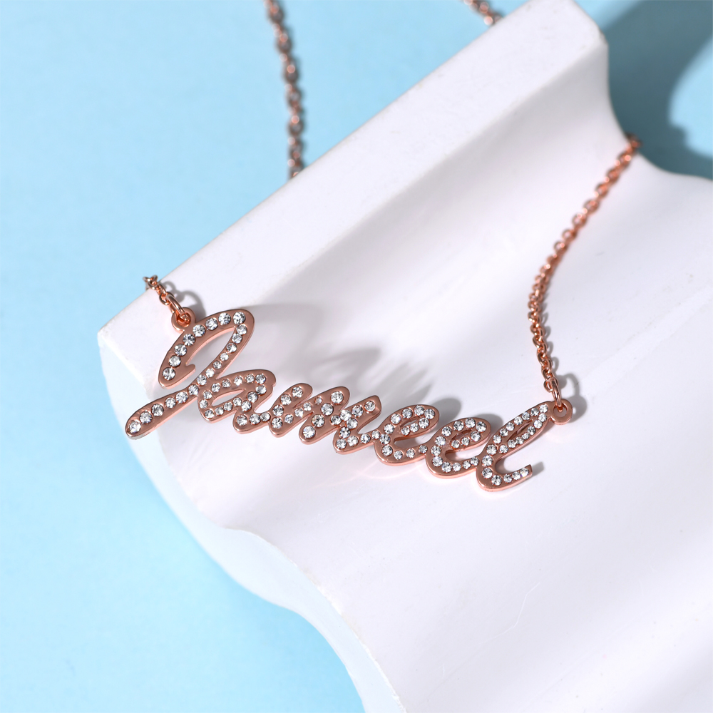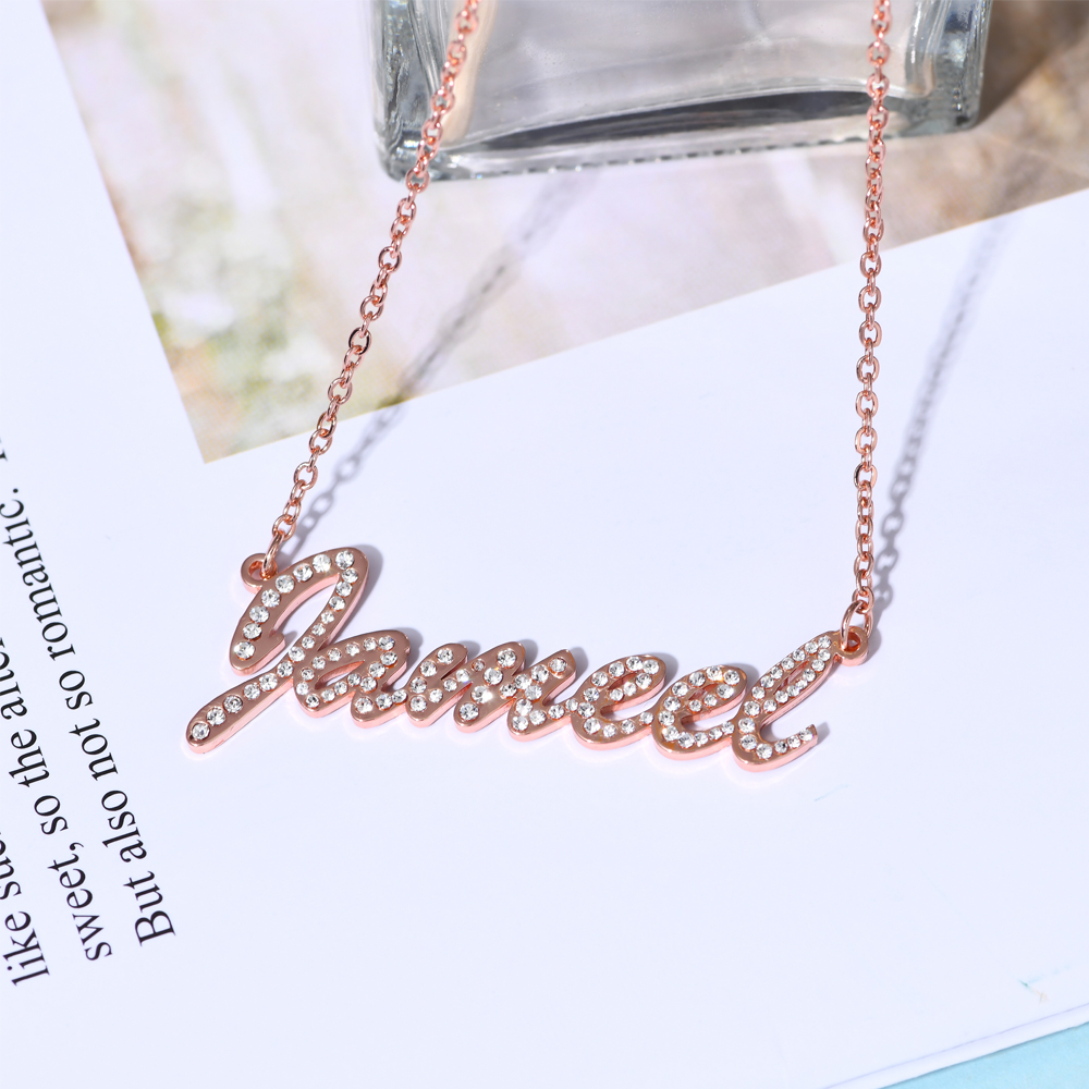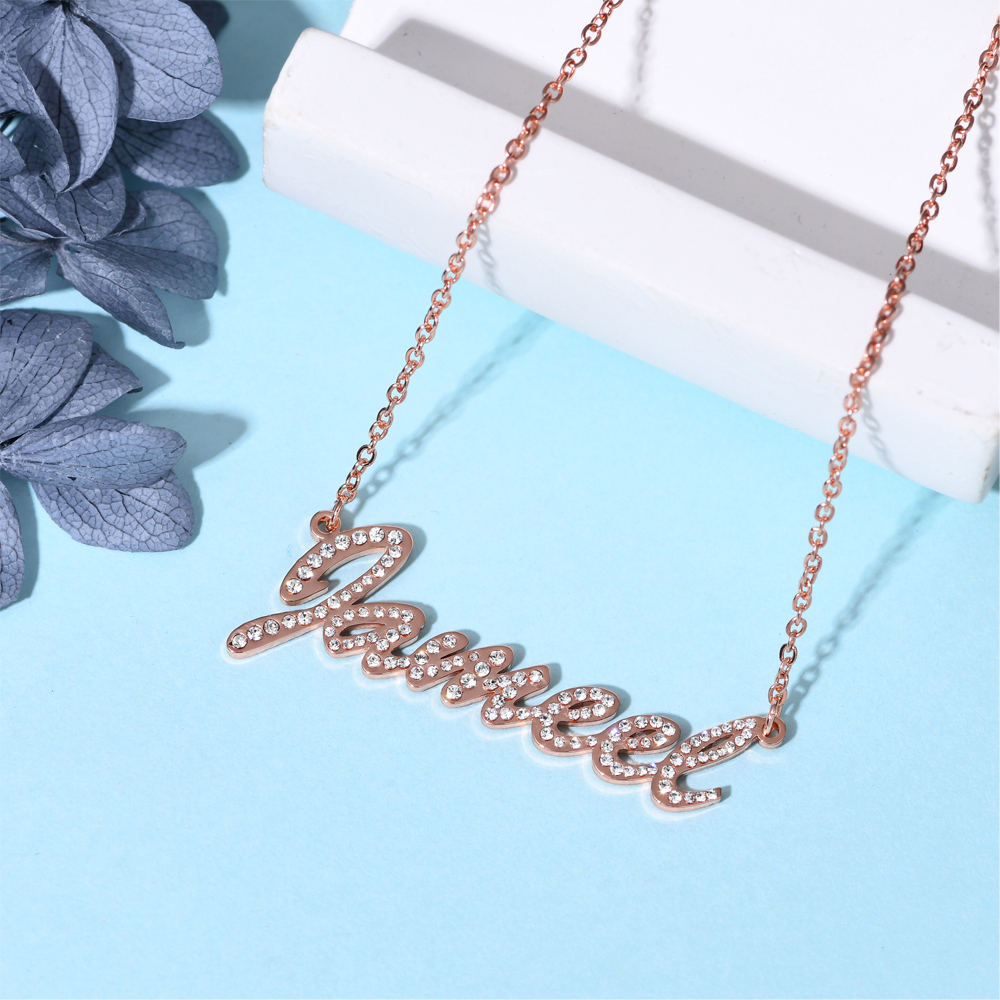 Stainless Steel Customized Name Zircon Necklace Personalized Crystal Name Necklaces Pendant Chain for Women Jewelry Birthday Gif