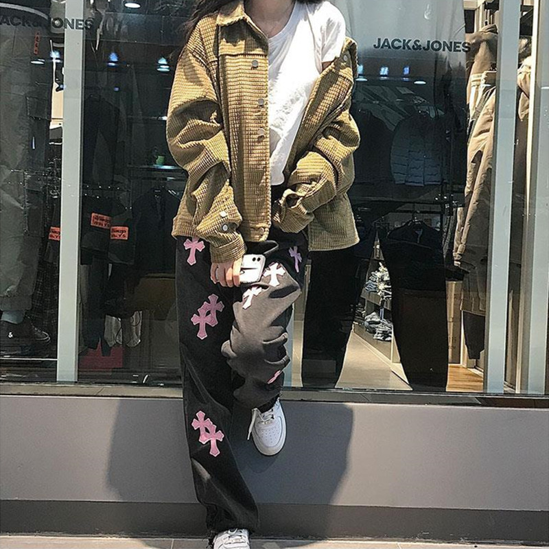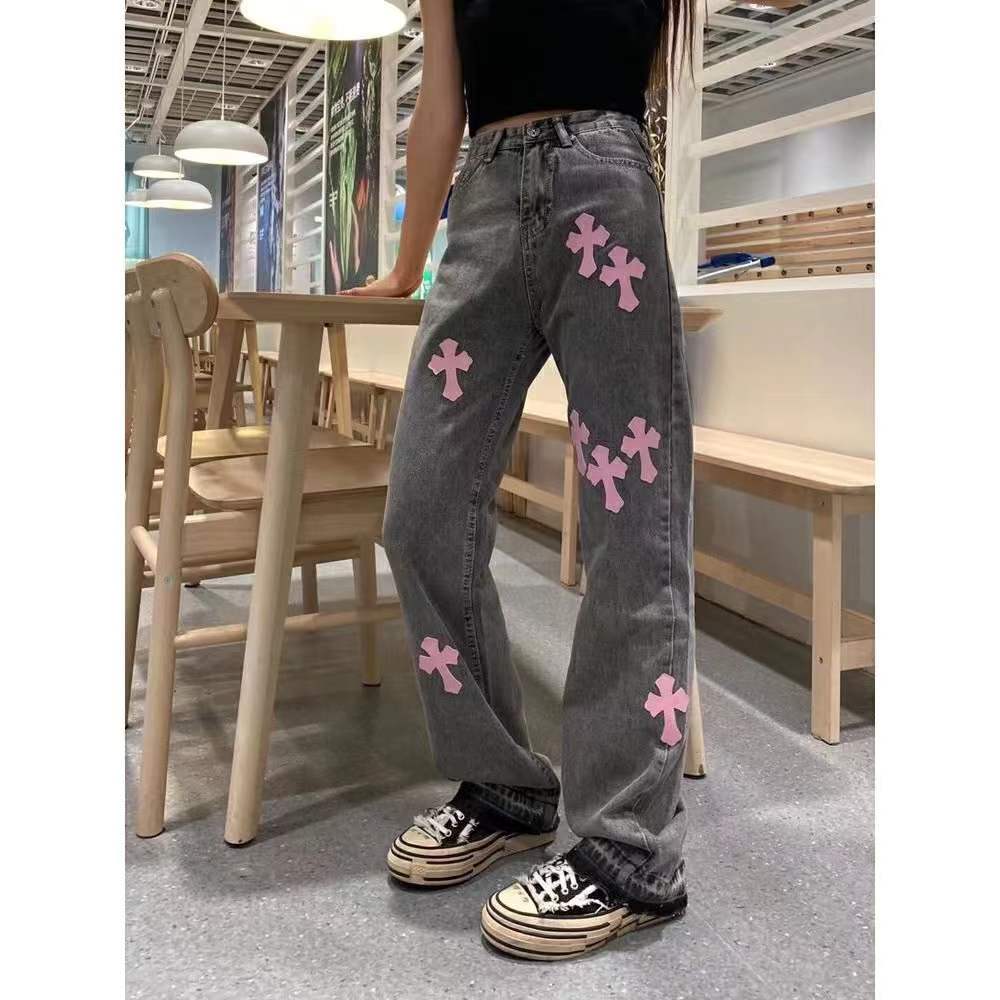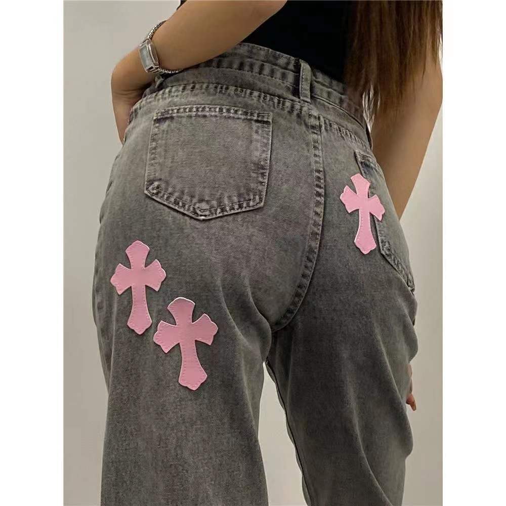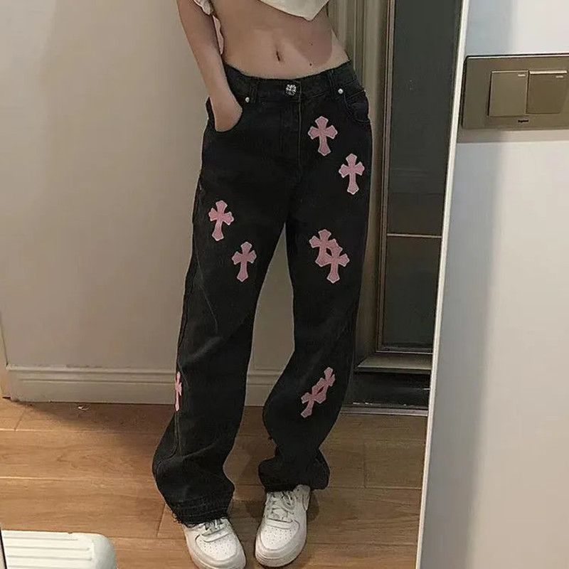 Streetwear Versatile Denim Trousers Cross Woman 4XL Size Y2k Straight Baggy Pants Leg Jeans High Waist Jeans