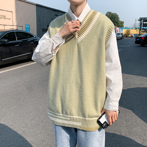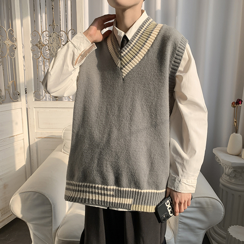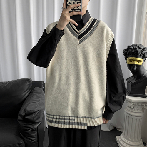 Striped V-neck Sweater Vests Men Loose Sleeveless Knitwear Male Preppy Style Autumn Warm Thermal Jumpers College Simple Baggy