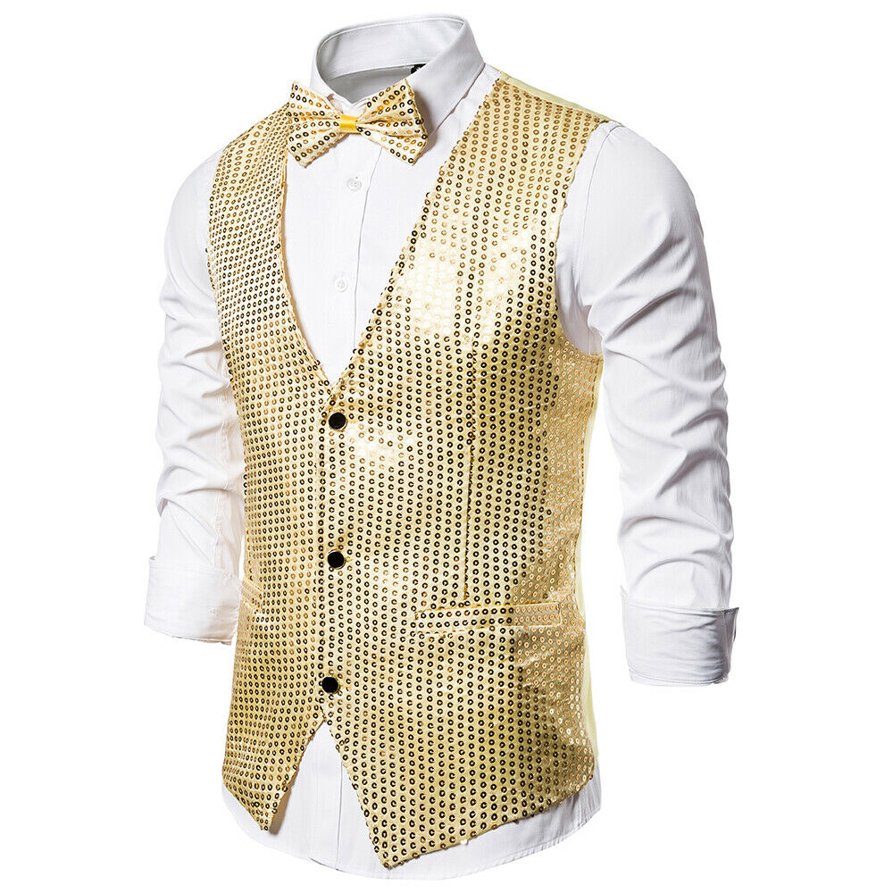 Stylish Men's Blazer Vest Coat Formal Slim Shiny Sequin Glitter Embellished Blazer Jacket Sequin Party Stage Coat