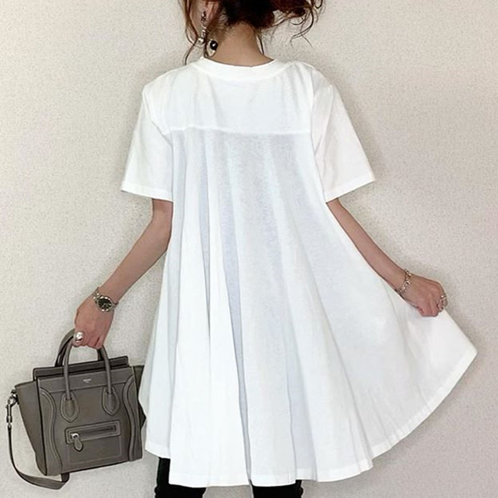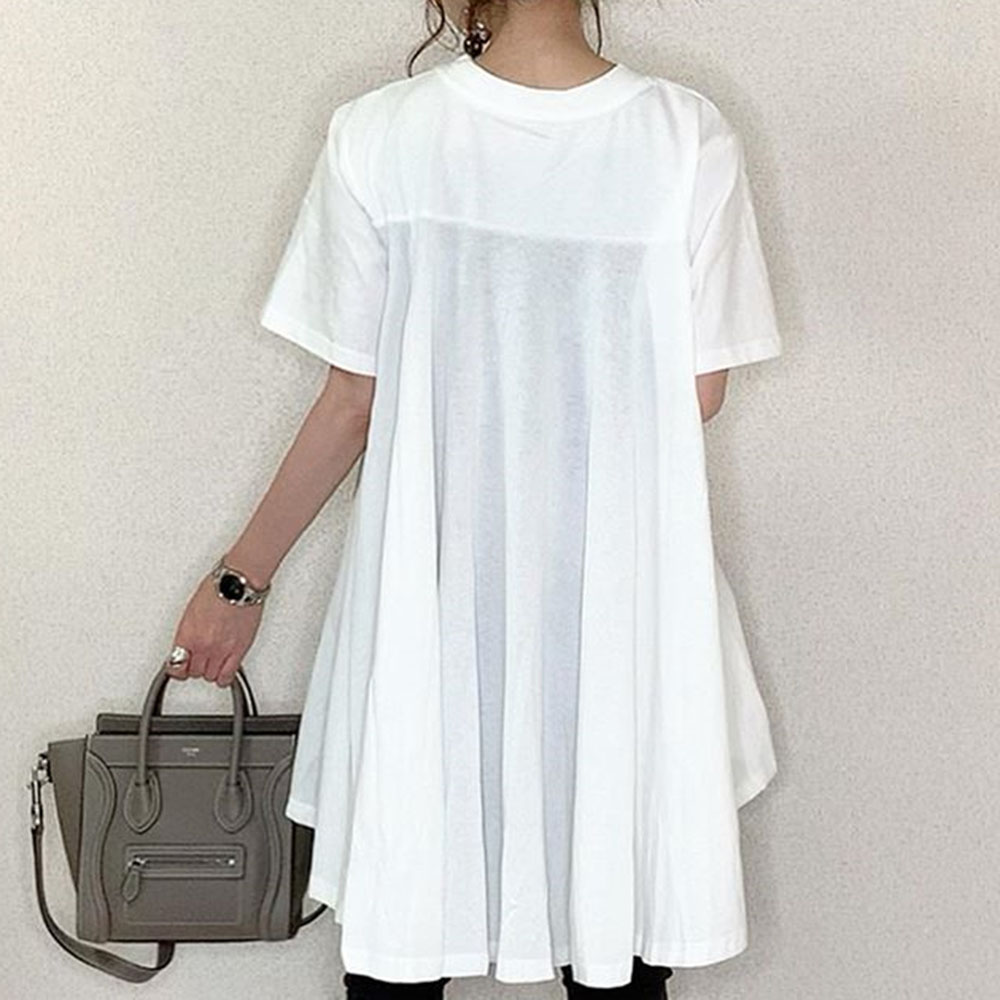 Summer Basic White T-shirt Cute Long Tshirt Women Casual Oversized Style Japan Streetwear Asymmetrical Top Tees Female