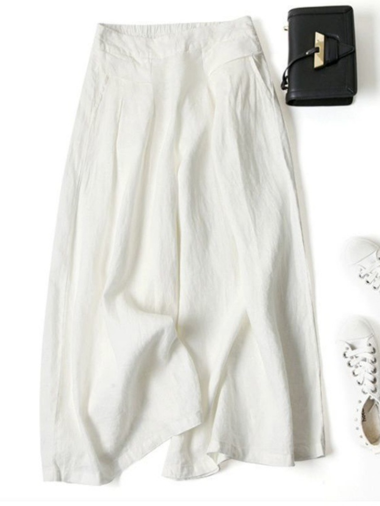 Summer Pants for Women Cotton Linen Large Size Wide Leg Pants Femme Arts Style Elastic Waist Solid Casual Loose Pantalon