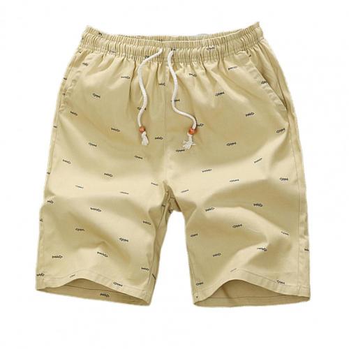 Mid Rise Fish Bone Print Men Shorts Loose Drawstring Pockets Short Pants Bottoms
