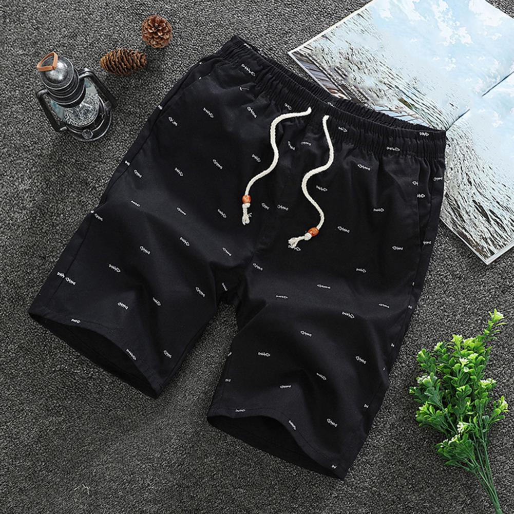 Summer Shorts Men Mid Rise Fish Bone Print Men Shorts Loose Drawstring Pockets Short Pants Bottoms High Shorts