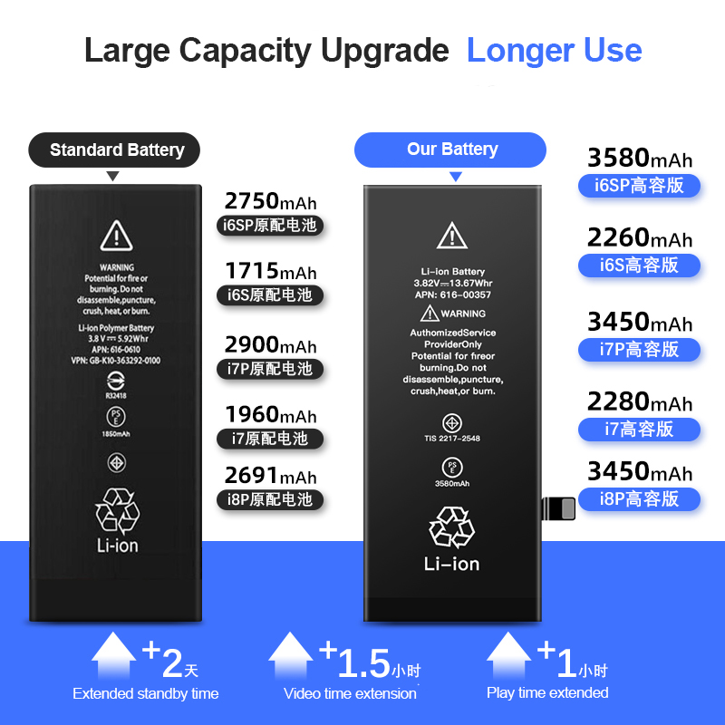 Super Capacity Phone Battery For Apple 5 S SE 6 S 7 8 Plus 10 X Xr Xs Max Replacement Batteries For iPhone 6S