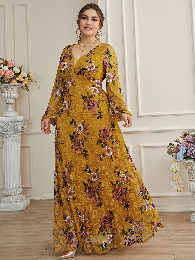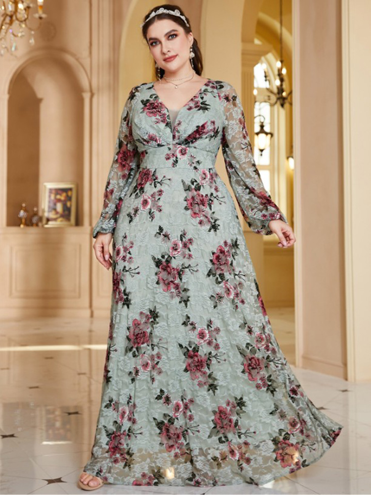 TOLEEN Spring Plus Size Large Maxi Turkish Chic Elegant Women's Dresses Long Sleeve Floral Party Evening Festival Clothing