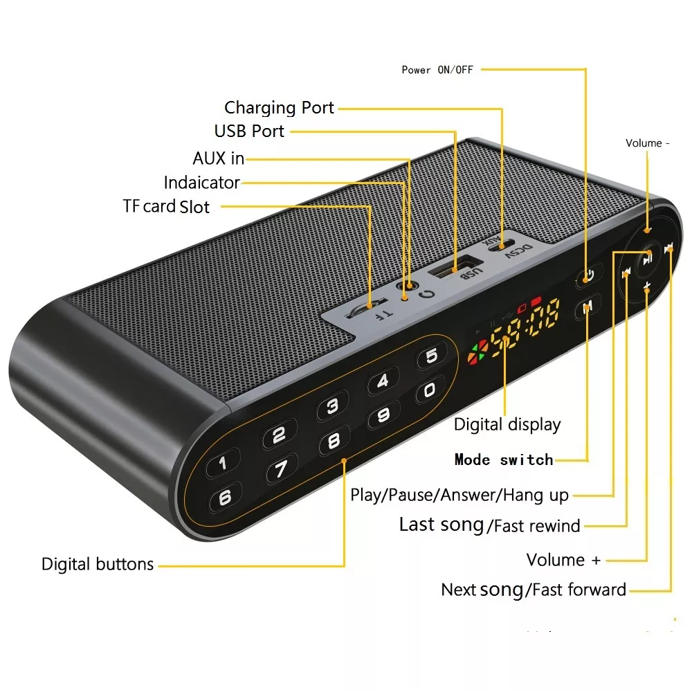 Functions: Bluetooth connection, plug 3.5mm wire connection