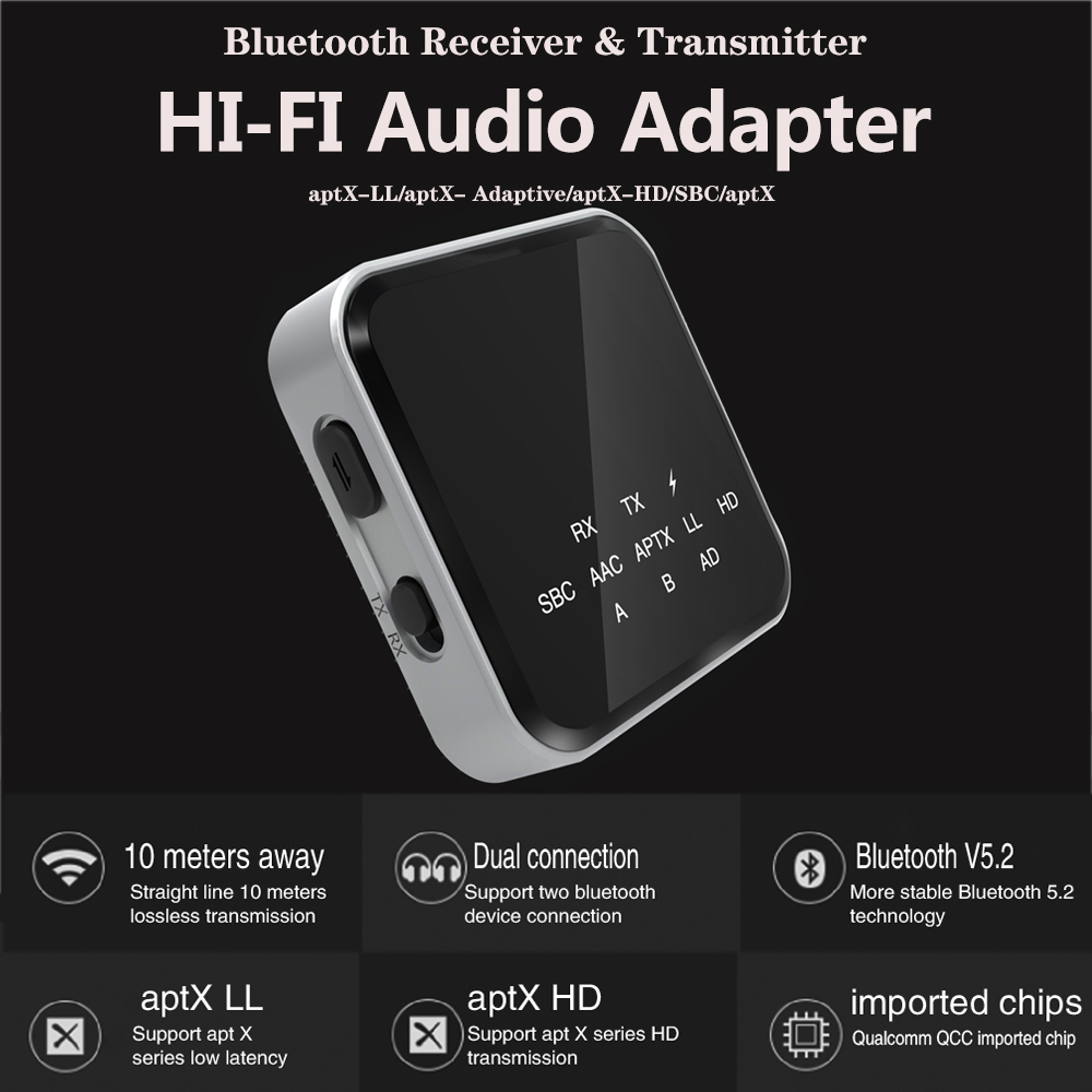 Tebe aptX-LL/HD Low Latency Bluetooth 5.2 Audio Receiver Transmitter Adapter Handsfree 3.5mm Aux Wireless Stereo Music Adapter